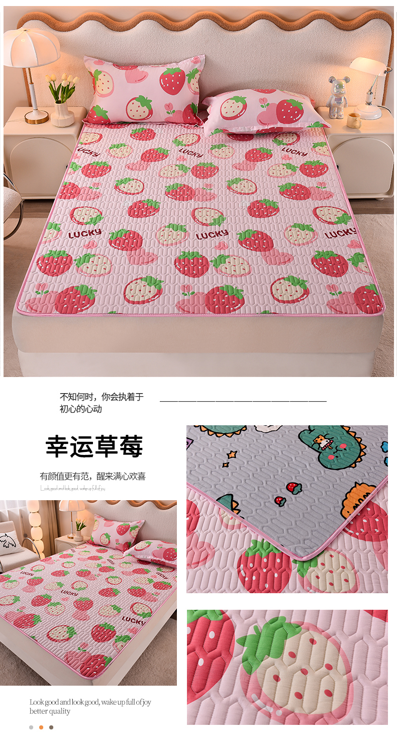 商品名称:床笠人家 2025新款A棉B绒-双面防水护理垫大床款 幸运草莓