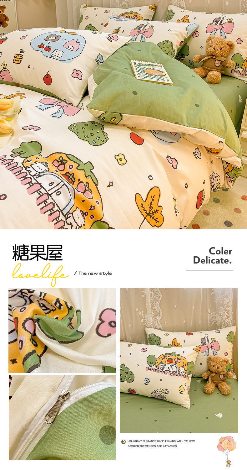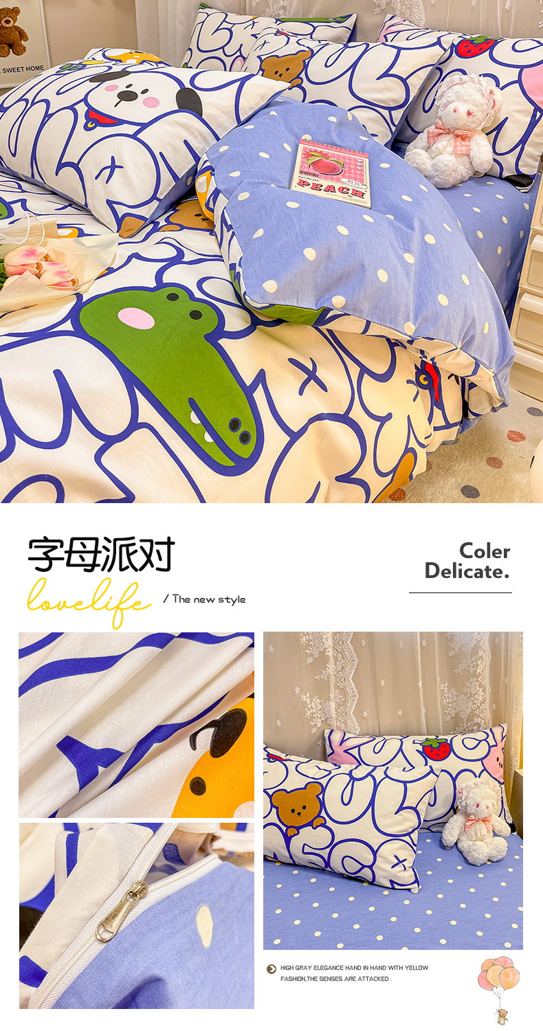 (总)小懒猪 2024春夏新款全棉卡通印花四件套