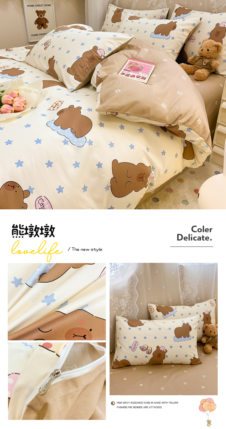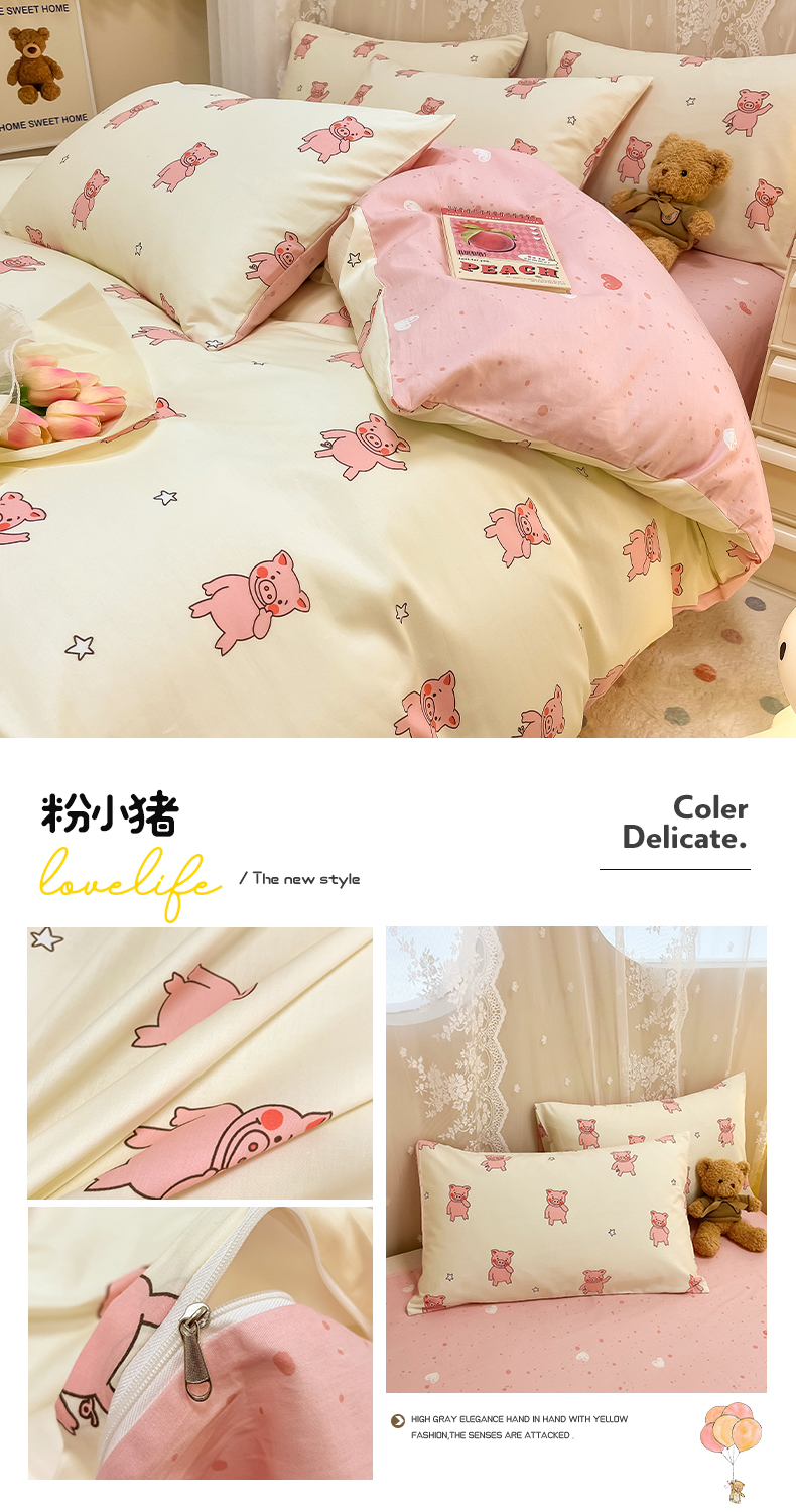 商品名称:(总)小懒猪 2024春夏新款全棉卡通印花四件套