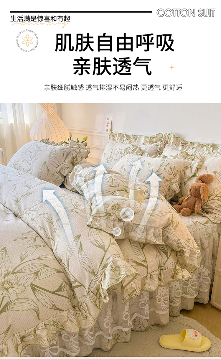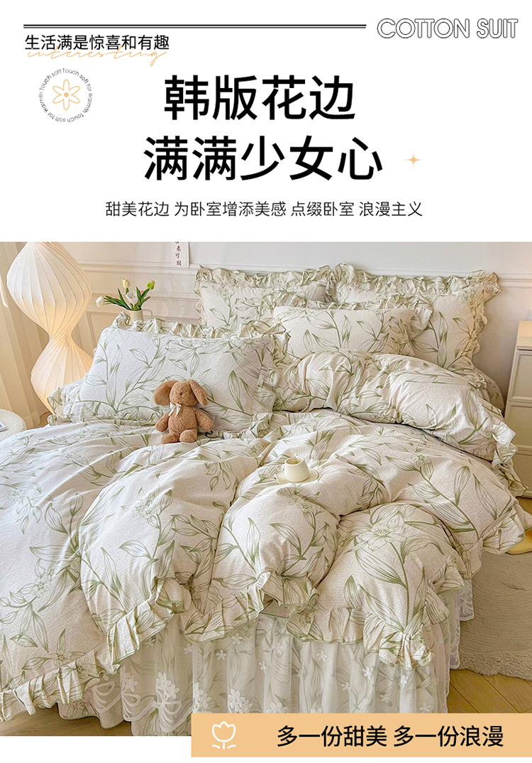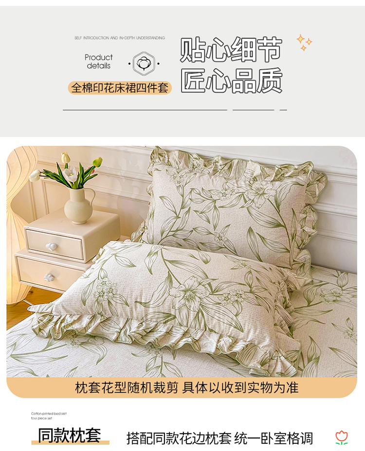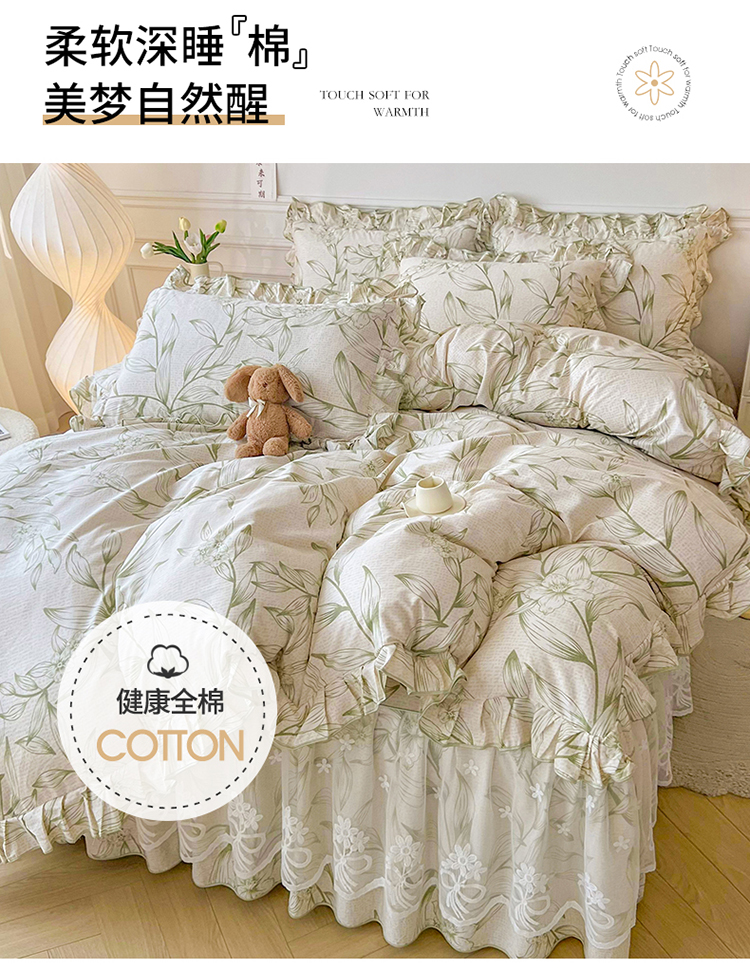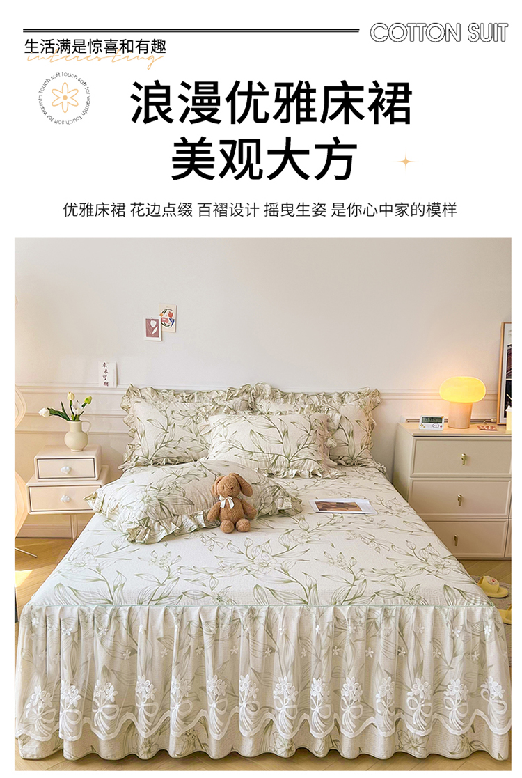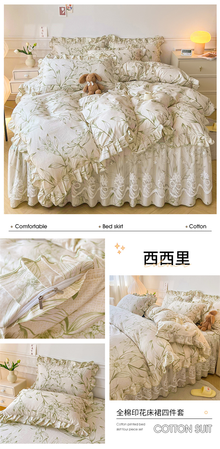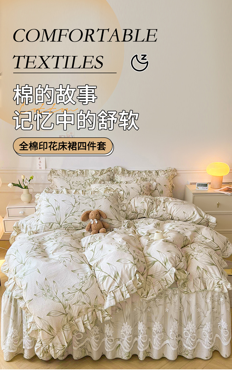 当前位置: 91家纺网 > 商品网购 > 床品套件 > 四件套 > 全棉普通四件套 > 宜凡家纺 2023新款全棉印花单层床裙四件套 西西里