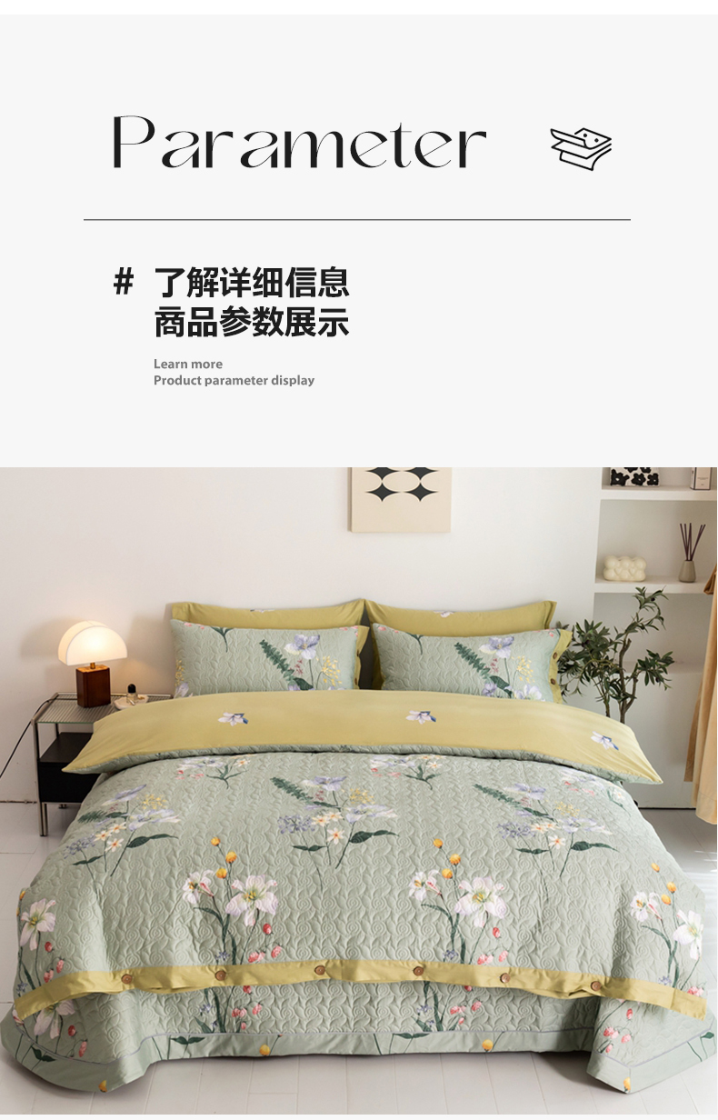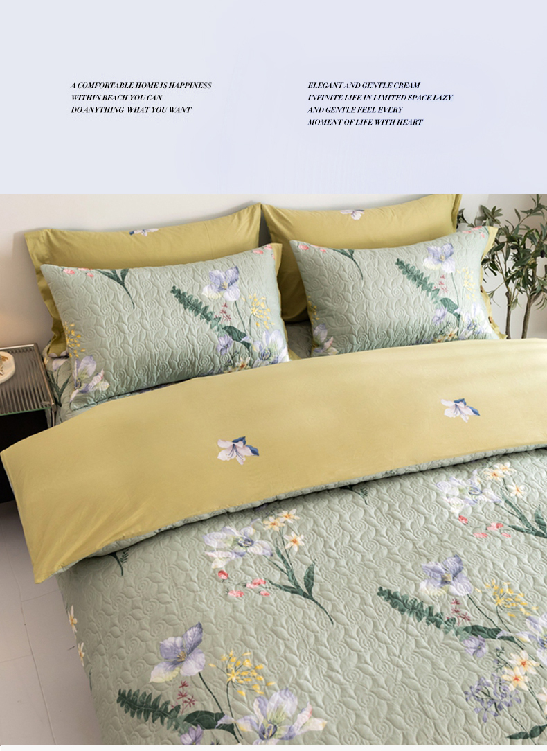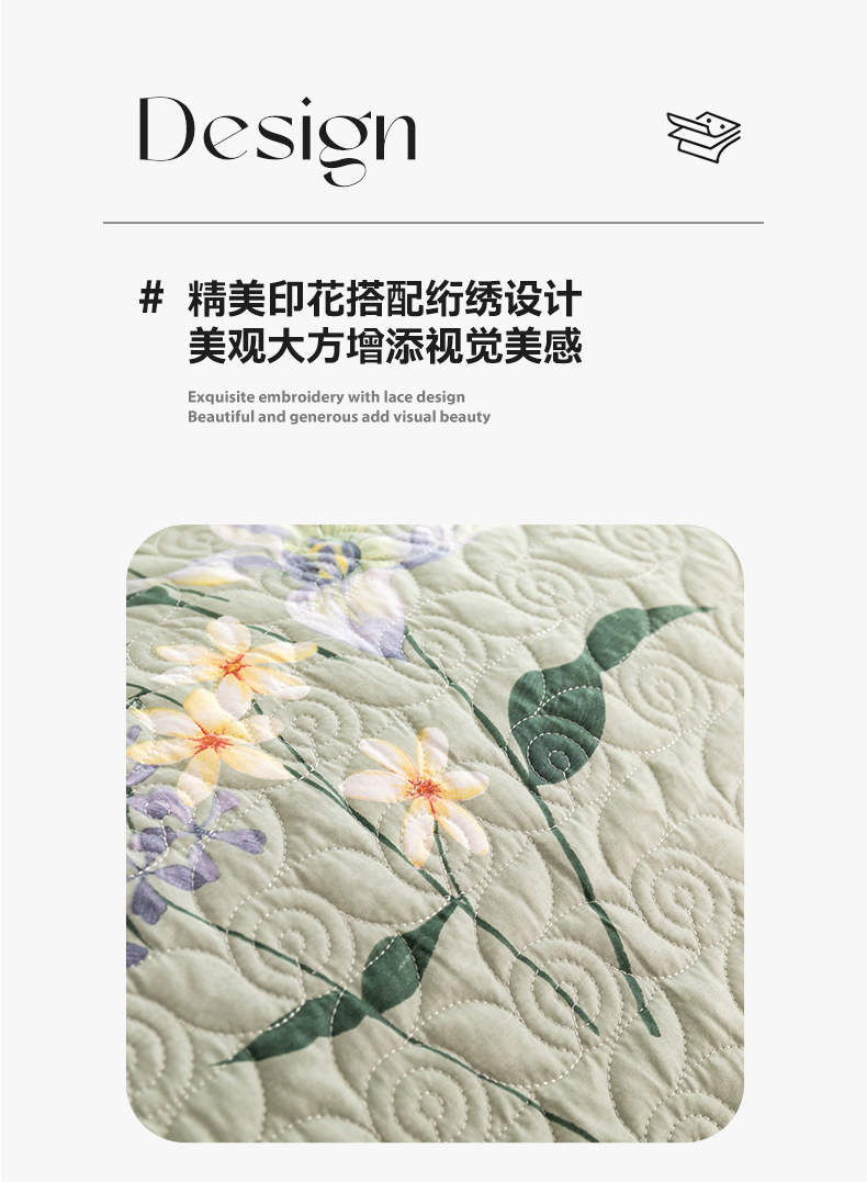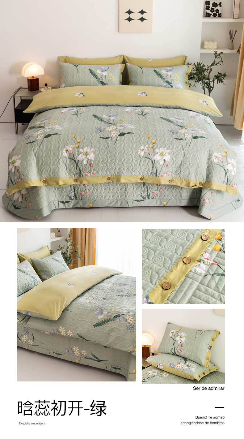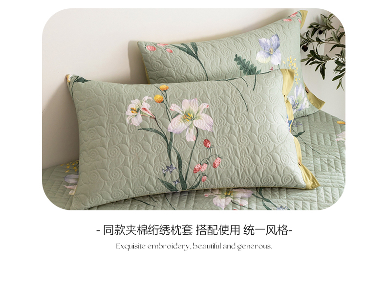 当前位置: 91家纺网 > 商品网购 > 床品套件 > 四件套 > 全棉普通四件套 > 优乐家纺 2023新款夹棉绗缝套件及单品系列-四件套 晗蕊初开-绿