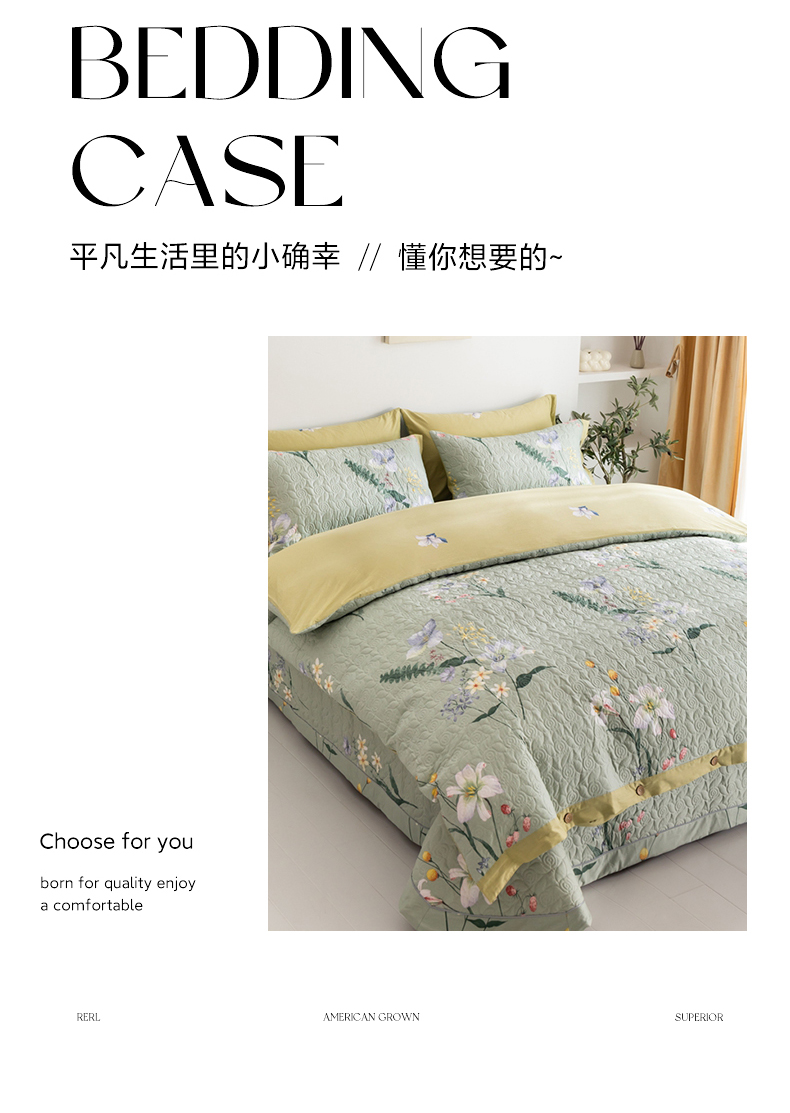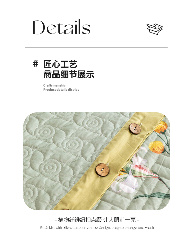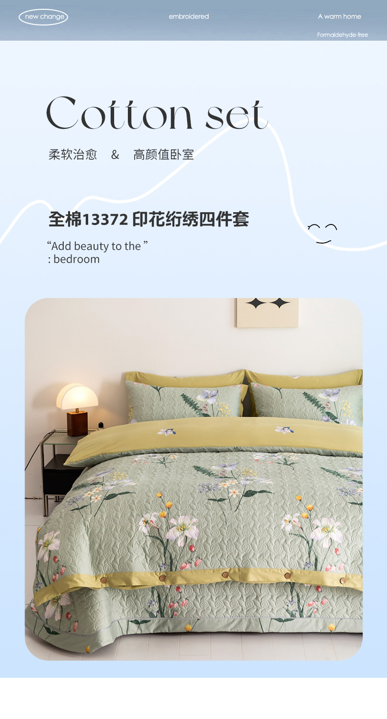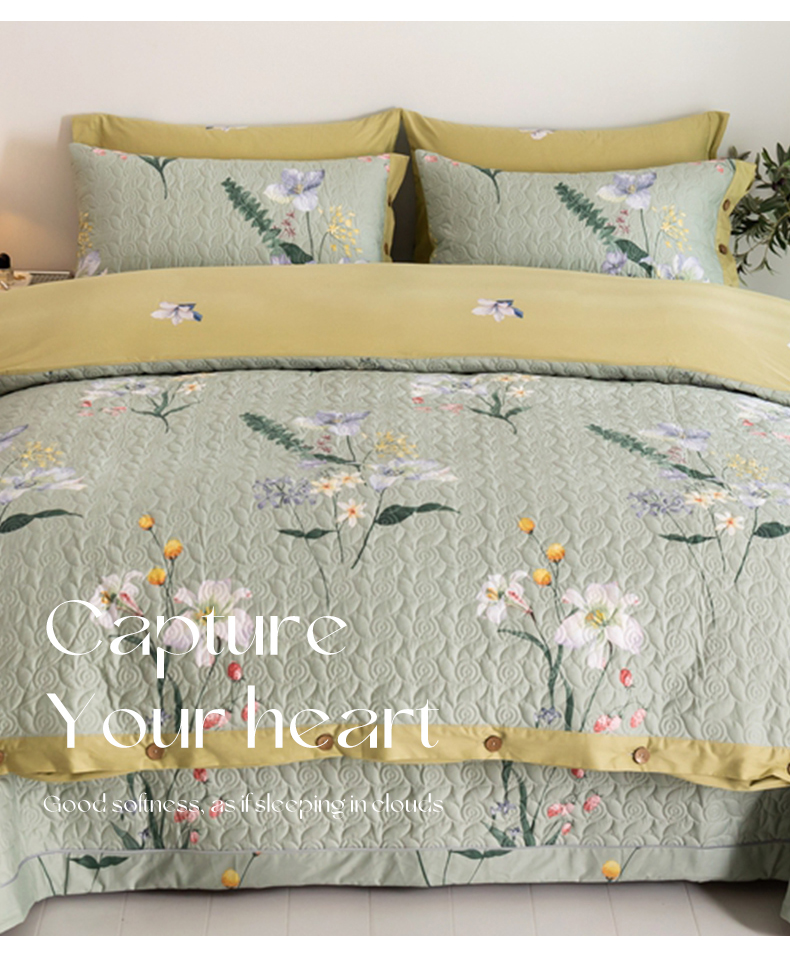 当前位置: 91家纺网 > 商品网购 > 床品套件 > 四件套 > 全棉普通四件套 > 优乐家纺 2023新款夹棉绗缝套件及单品系列-四件套 晗蕊初开-绿