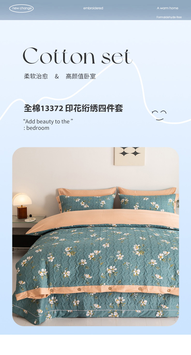• 91家纺网 家纺一手货源 找家纺 (总)优乐家纺 2025新款全棉斜纹13376单层被套夹棉床盖款四件套,安琪-黄,安琪-绿,波西米亚,博尔-咖,春意盎然,朵唯,花颜悦色,迷雾,慕斯,南薇,南薇-兰,普卡拉-红,普卡拉-兰,清婉,蔚然花,早春