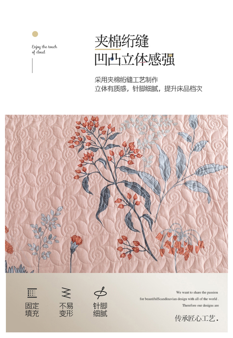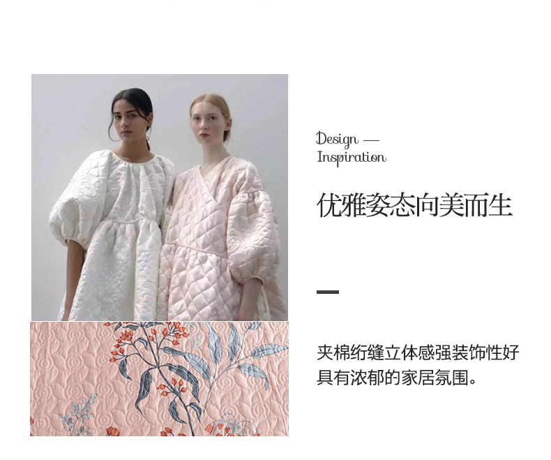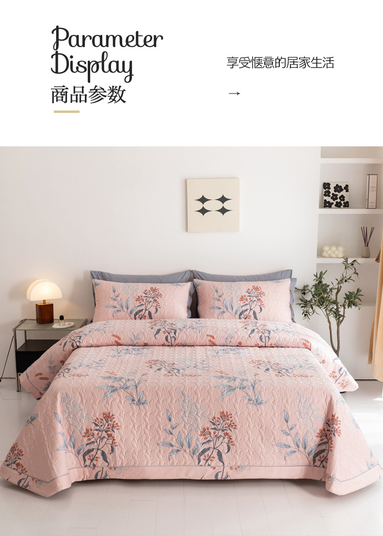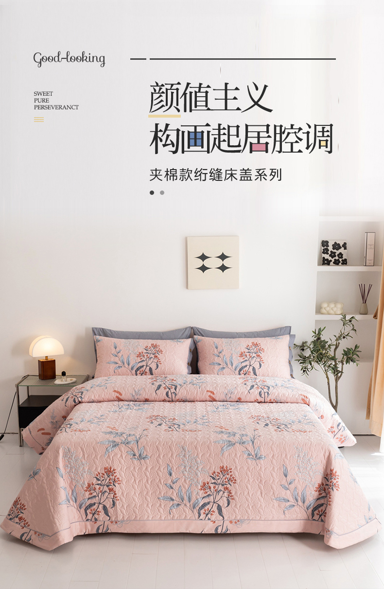 商品名称:优乐家纺 2023新款夹棉绗缝套件及单品系列-单床盖 晗蕊初开-粉
