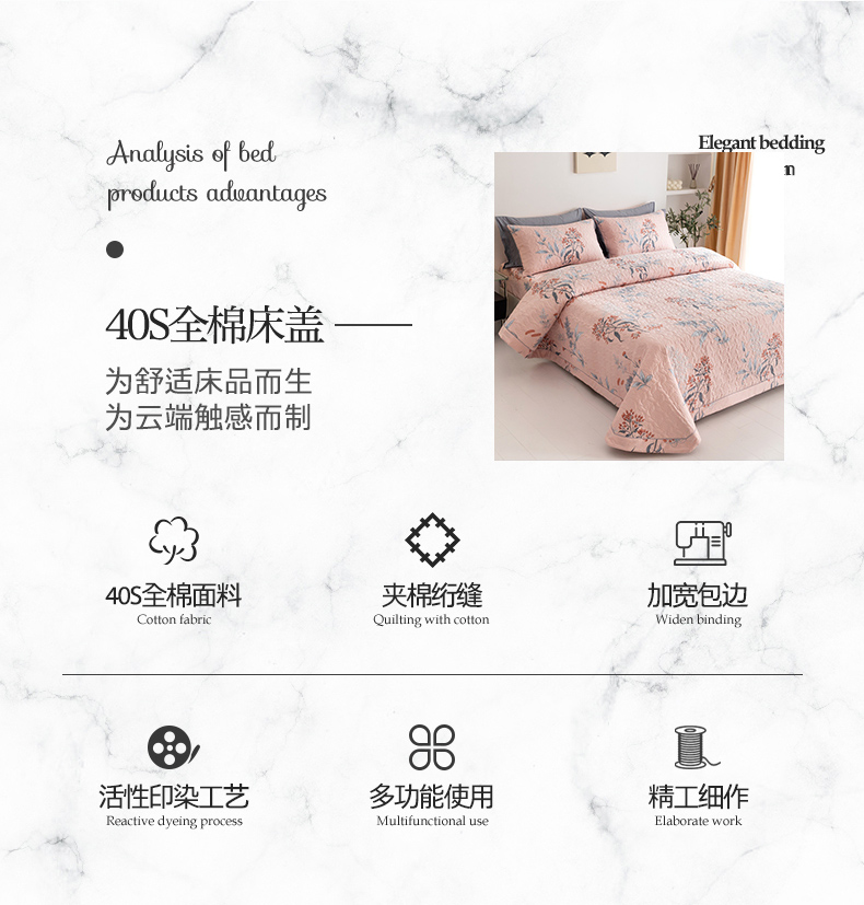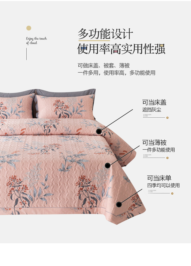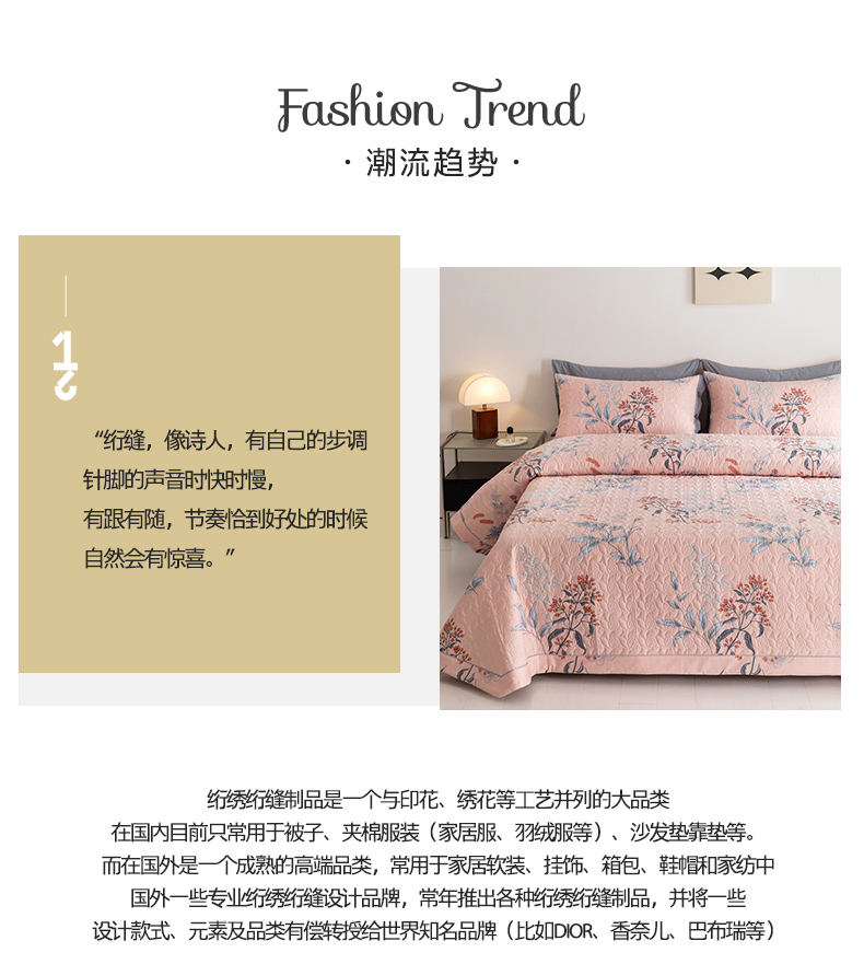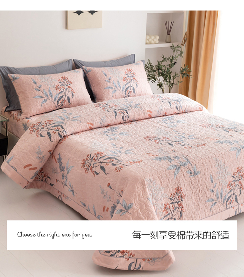 商品名称:优乐家纺 2023新款夹棉绗缝套件及单品系列-单床盖 晗蕊初开-粉