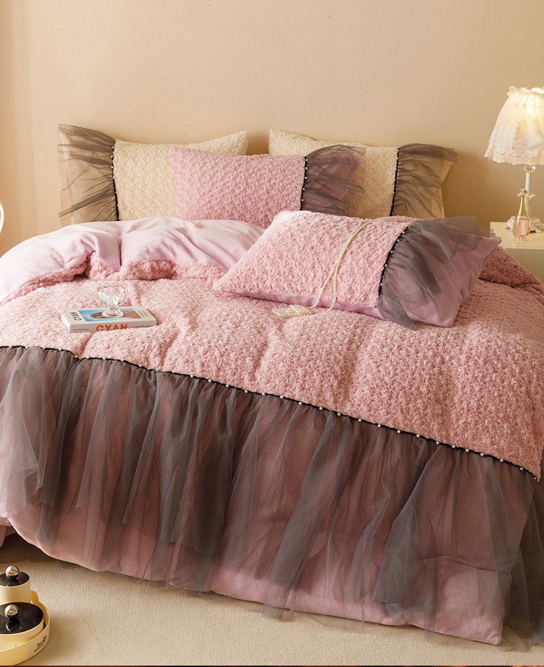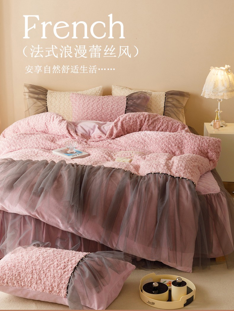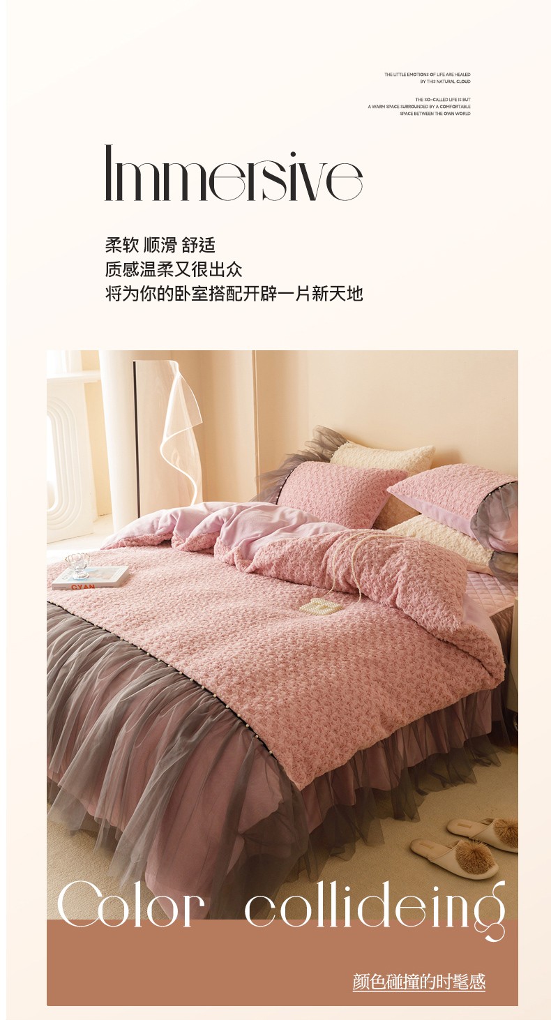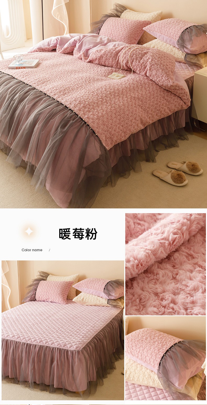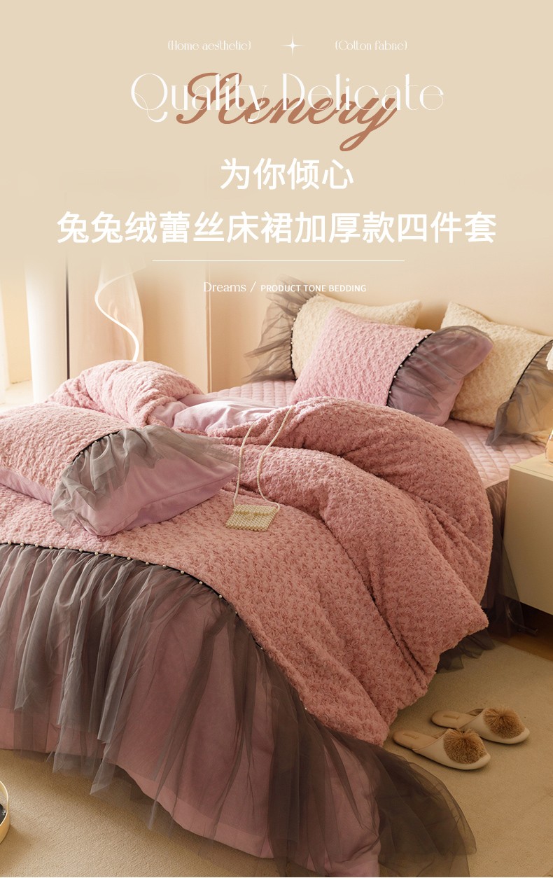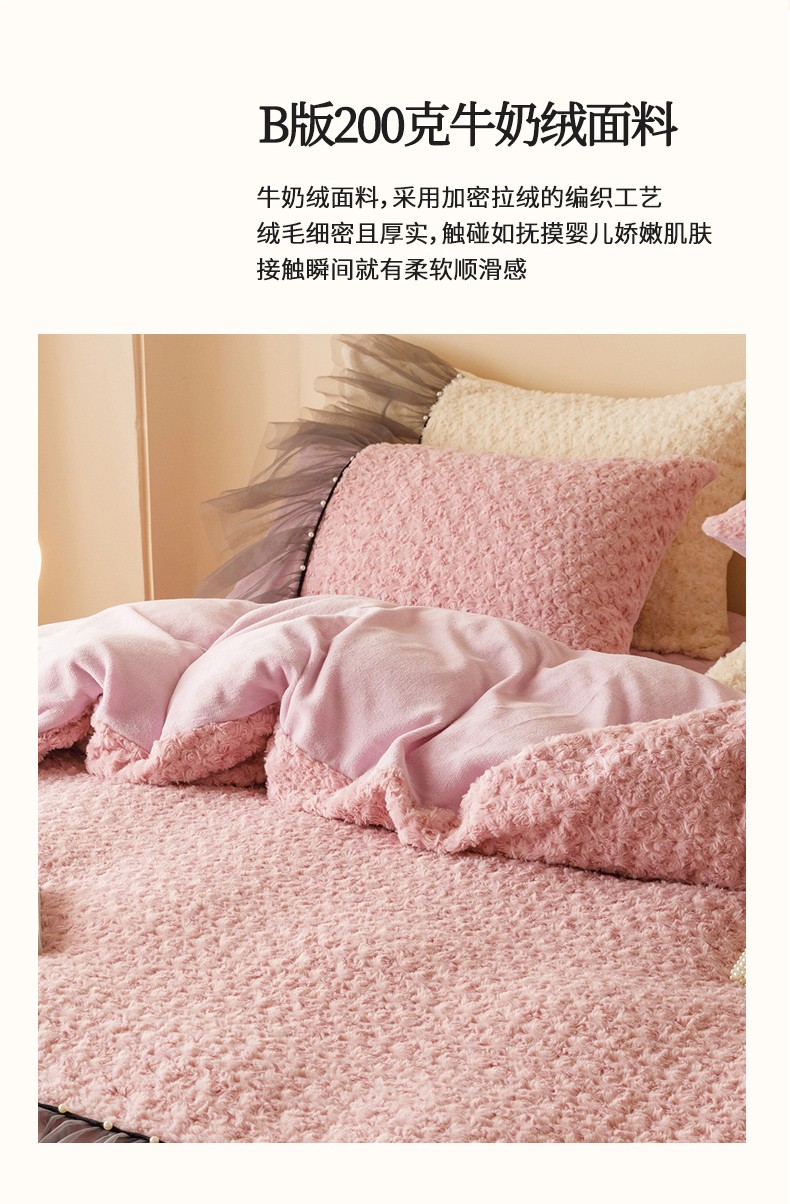 菊上 2023-兔兔绒-玫瑰花语加棉床裙款系列 暖莓粉