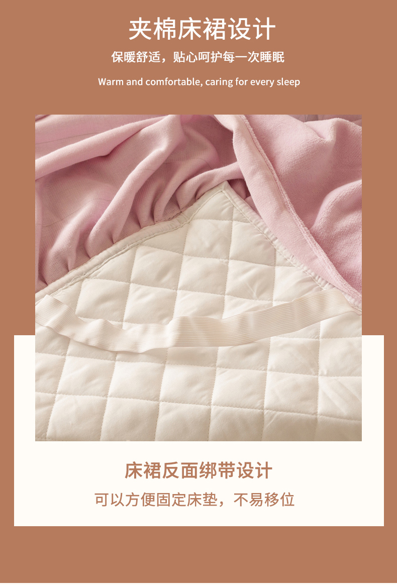 商品名称:菊上 2023-兔兔绒-玫瑰花语加棉床裙款系列 暖莓粉