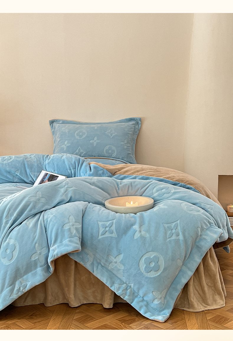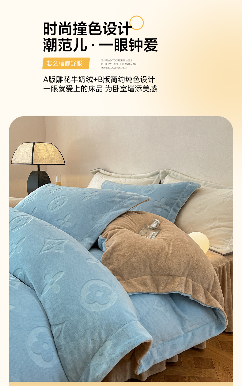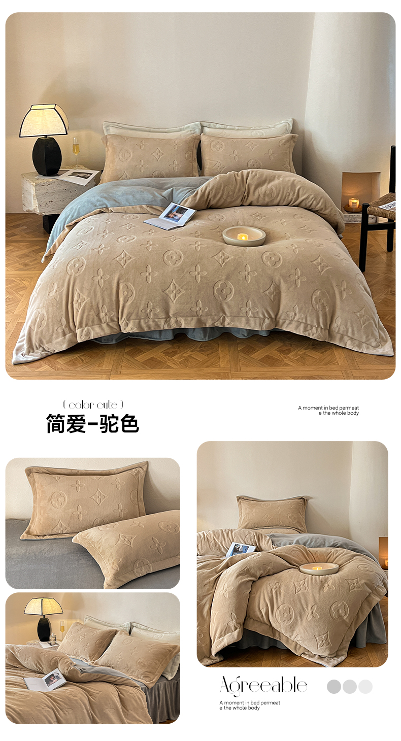 (总)金麦家纺 2023新款230g高克重牛奶绒雕花四件套