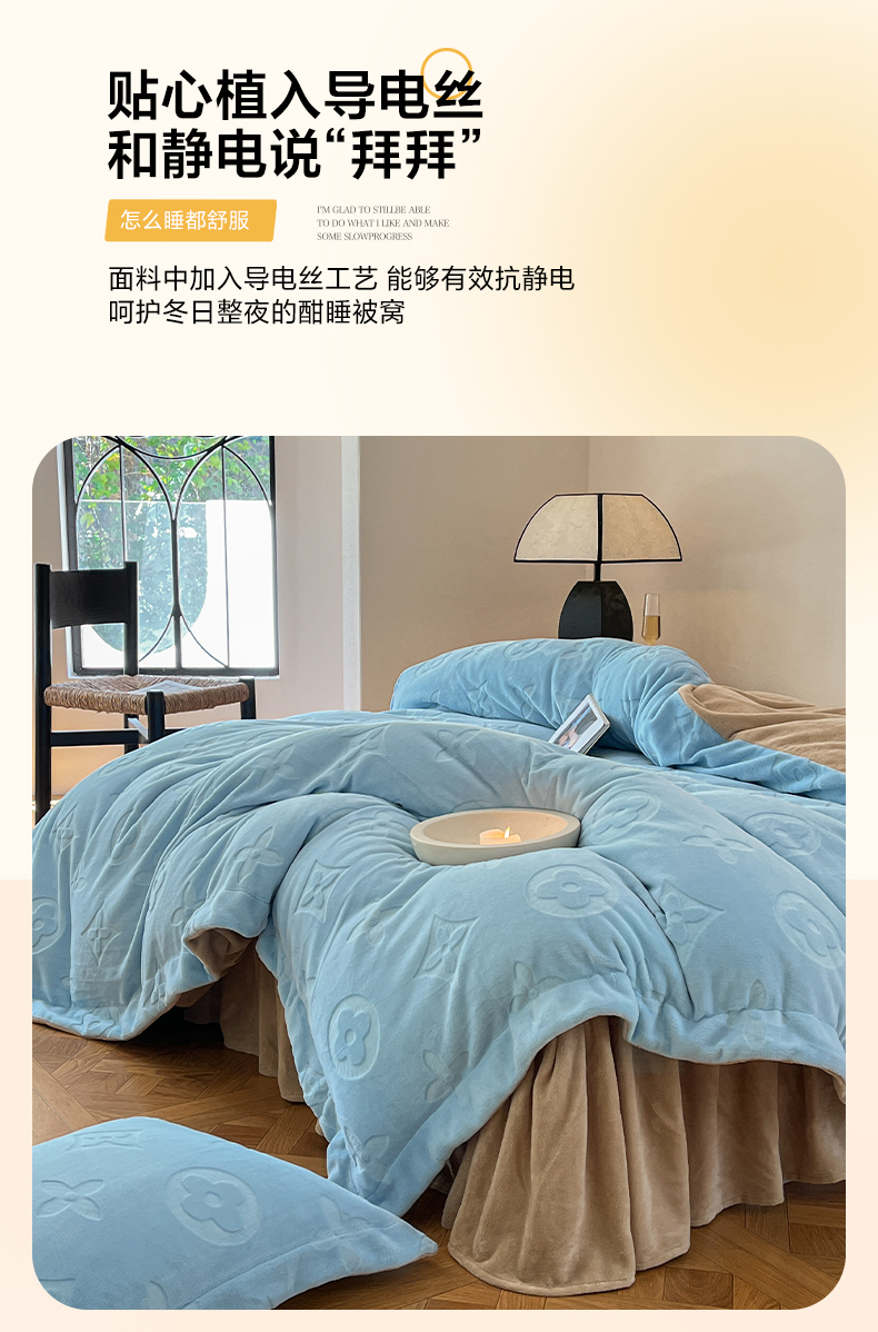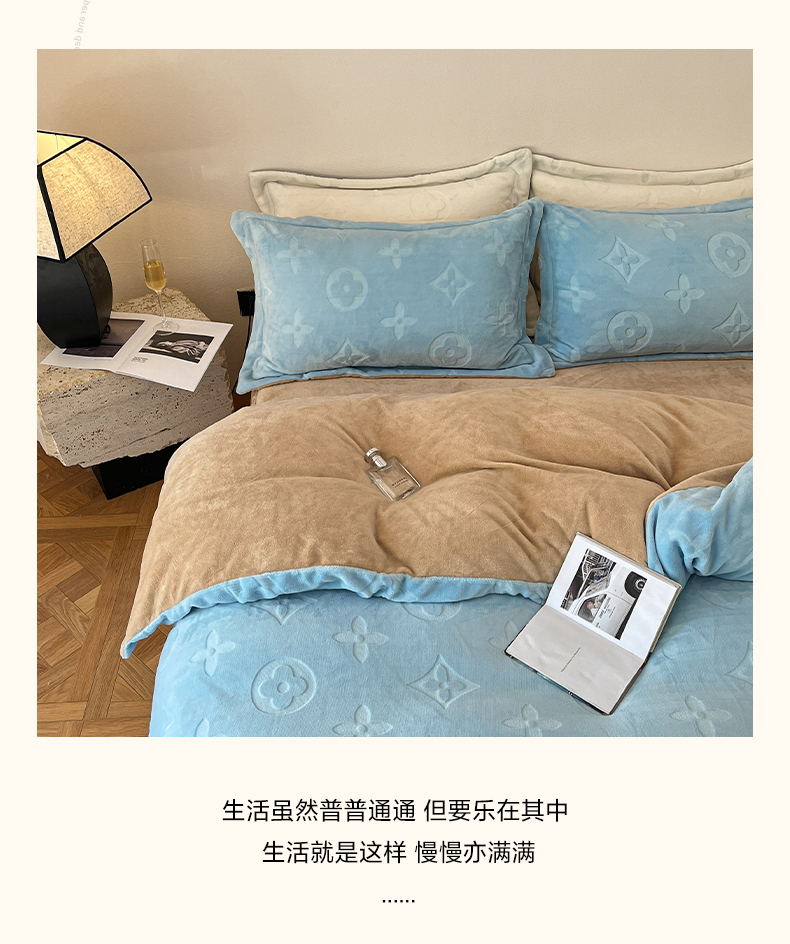 商品名称:(总)金麦家纺 2023新款230g高克重牛奶绒雕花四件套