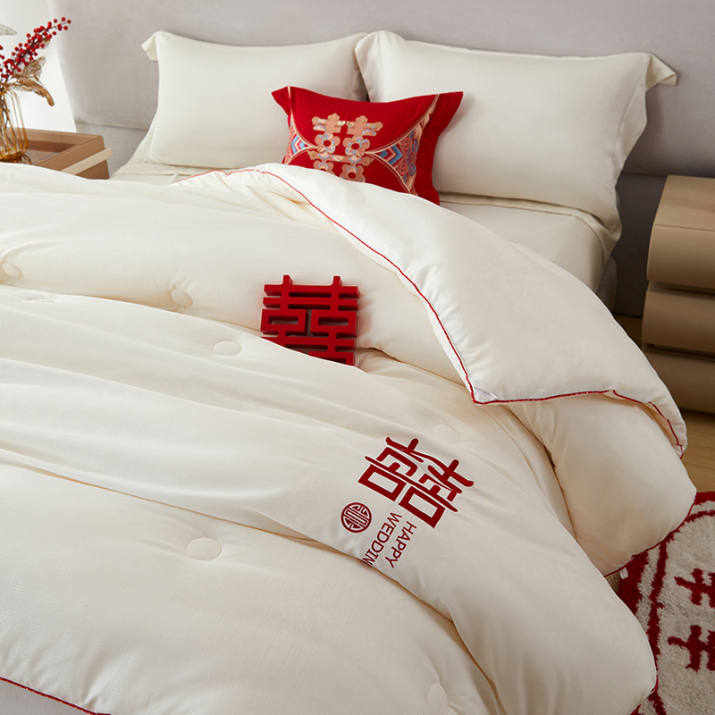 商品名称:(总)丽卡家纺 2023新款大豆纤维澳棉提花被子被芯-双喜临门