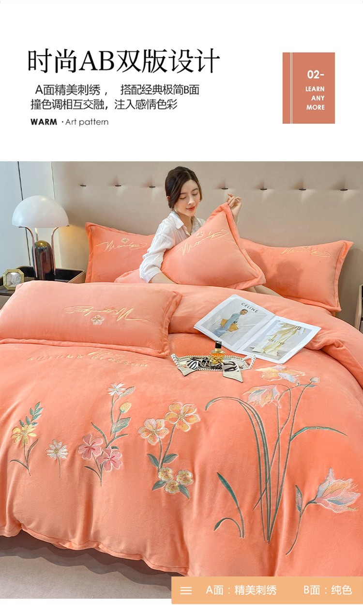 (总)漫布云2025秋冬新款全消光大版花卉平绣牛奶绒刺绣款四件套--绽放系列,绽放-艾玛橙, 绽放-豆沙红 ,绽放-樱花粉, 绽放-婴儿蓝 ,绽放-高级灰,绽放-梦幻紫