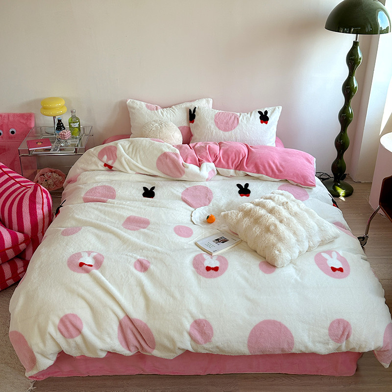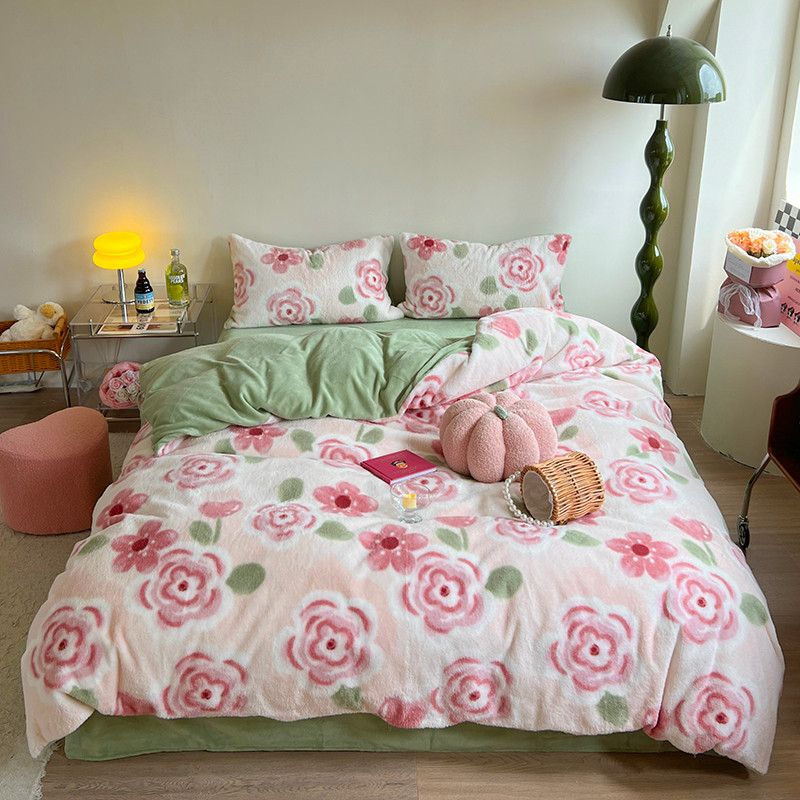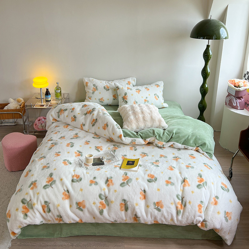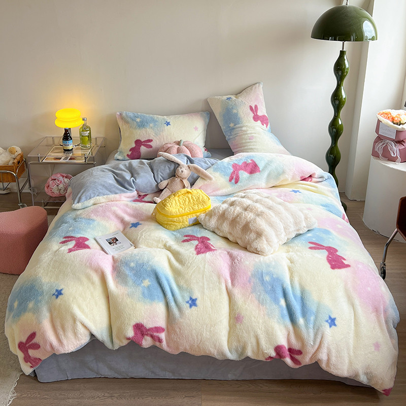 (总)柚子家纺 2023新款高克重舒适保暖兔绒印花四件套