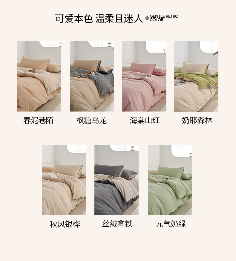(总)风向标家纺 2025新款亲肤舒适赛络棉全棉纯棉针织棉(螺旋纱)四件套,玛奇奶茶,抹茶布丁,慕斯红酒,慕斯咖啡,绒白棕茶,香雪雾蓉,尤加利叶