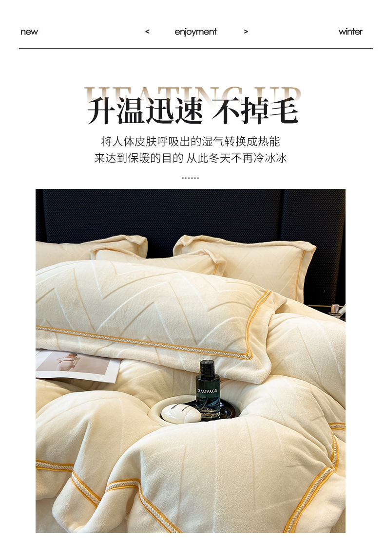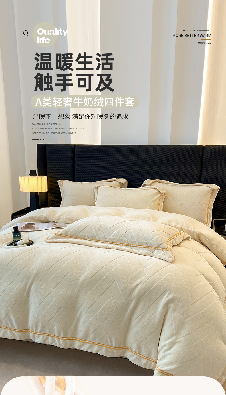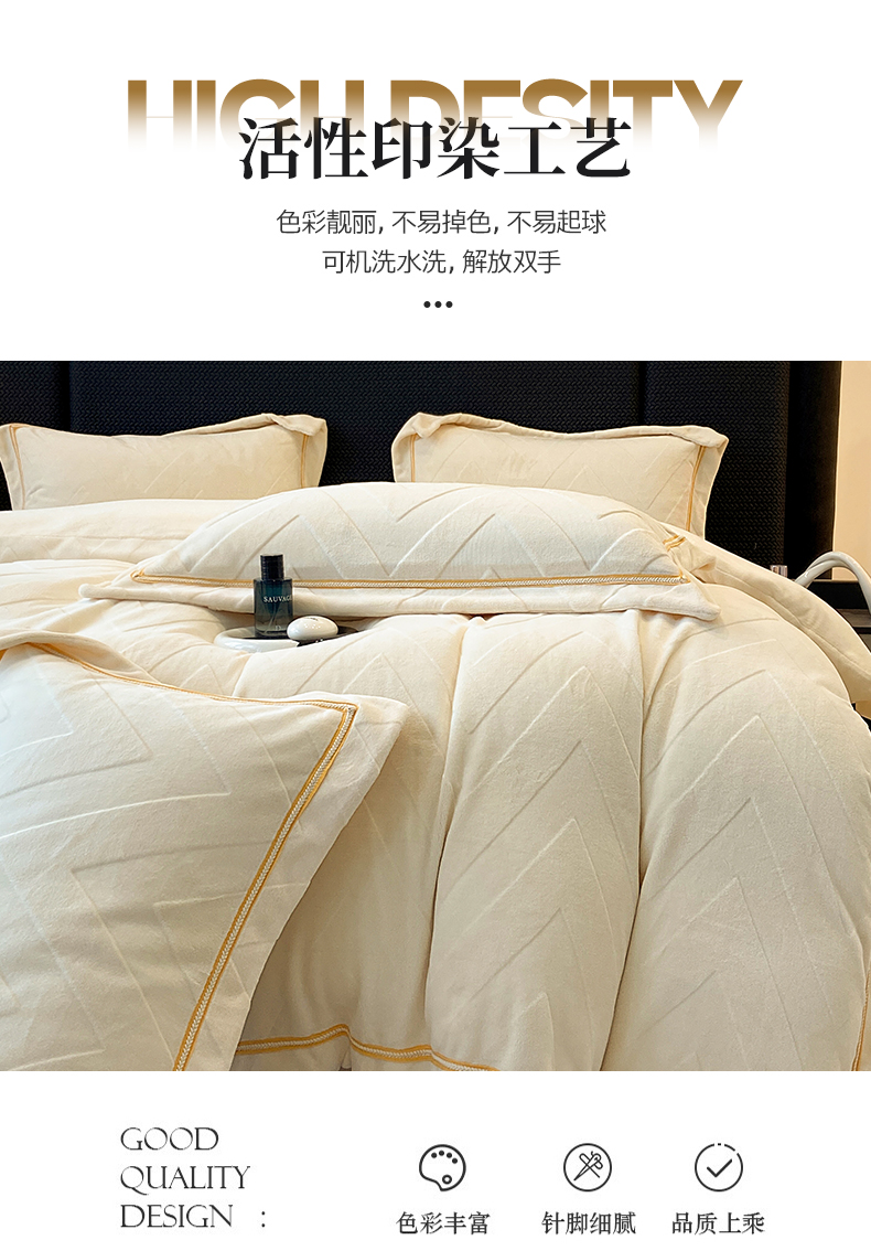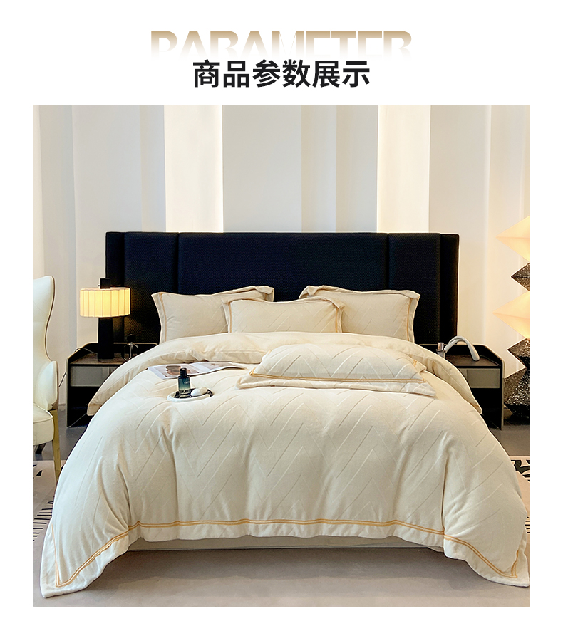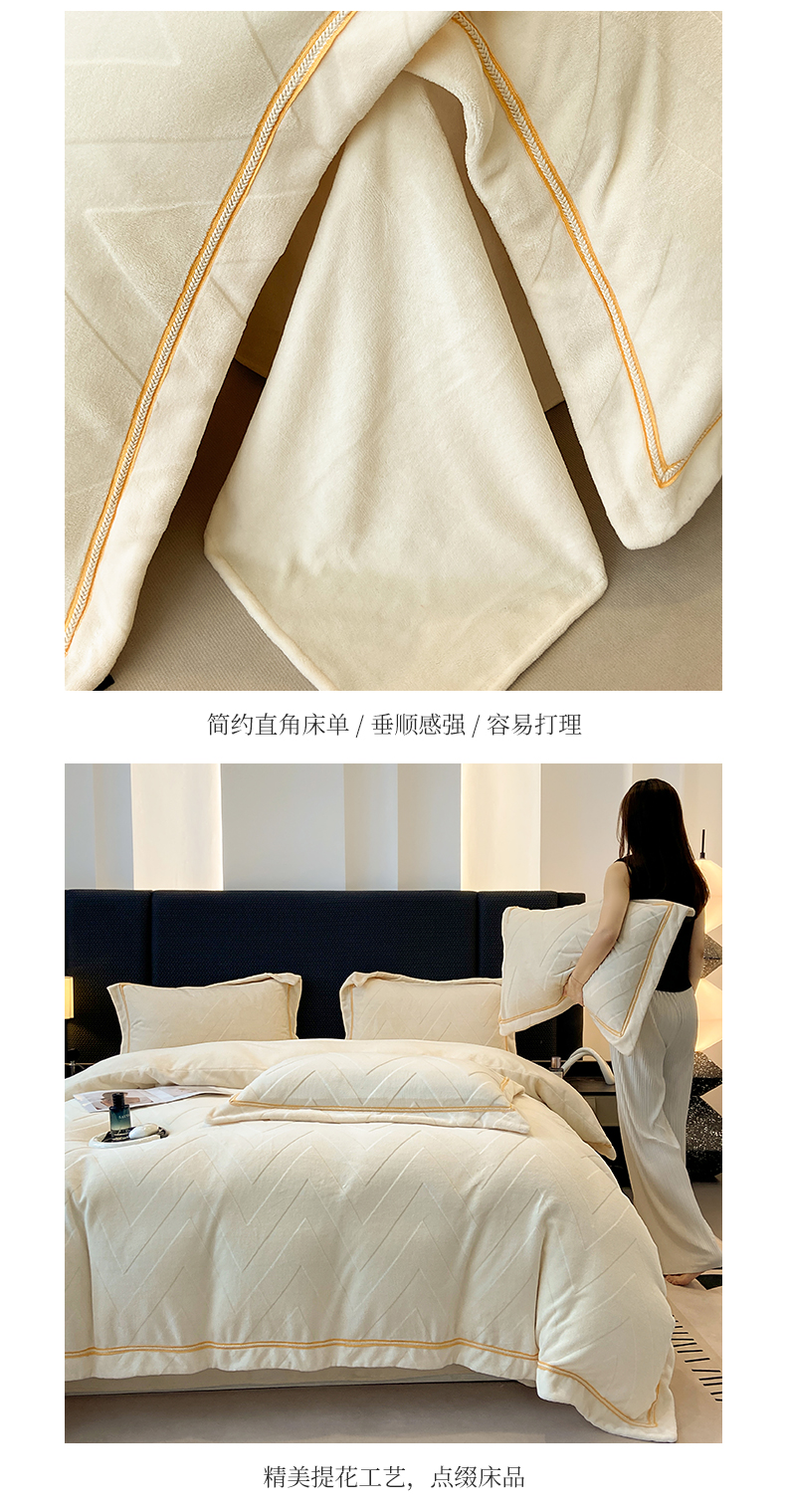 商品名称:家居1号 2024新款冬季高端剪花230克全消光工艺牛奶绒宝宝绒珊瑚绒婴儿绒刺绣轻奢四件套床单被套-简尚 简尚-奶白
