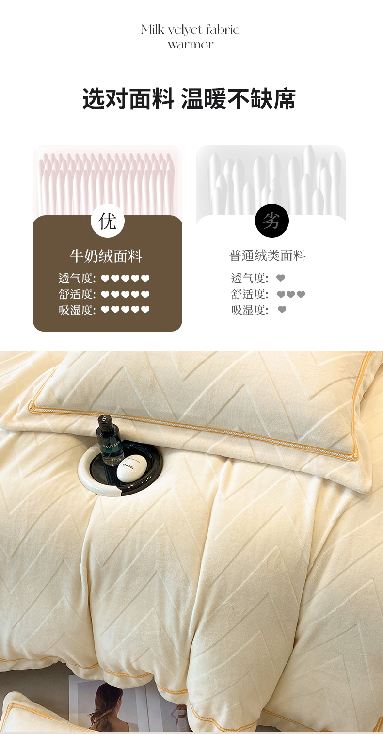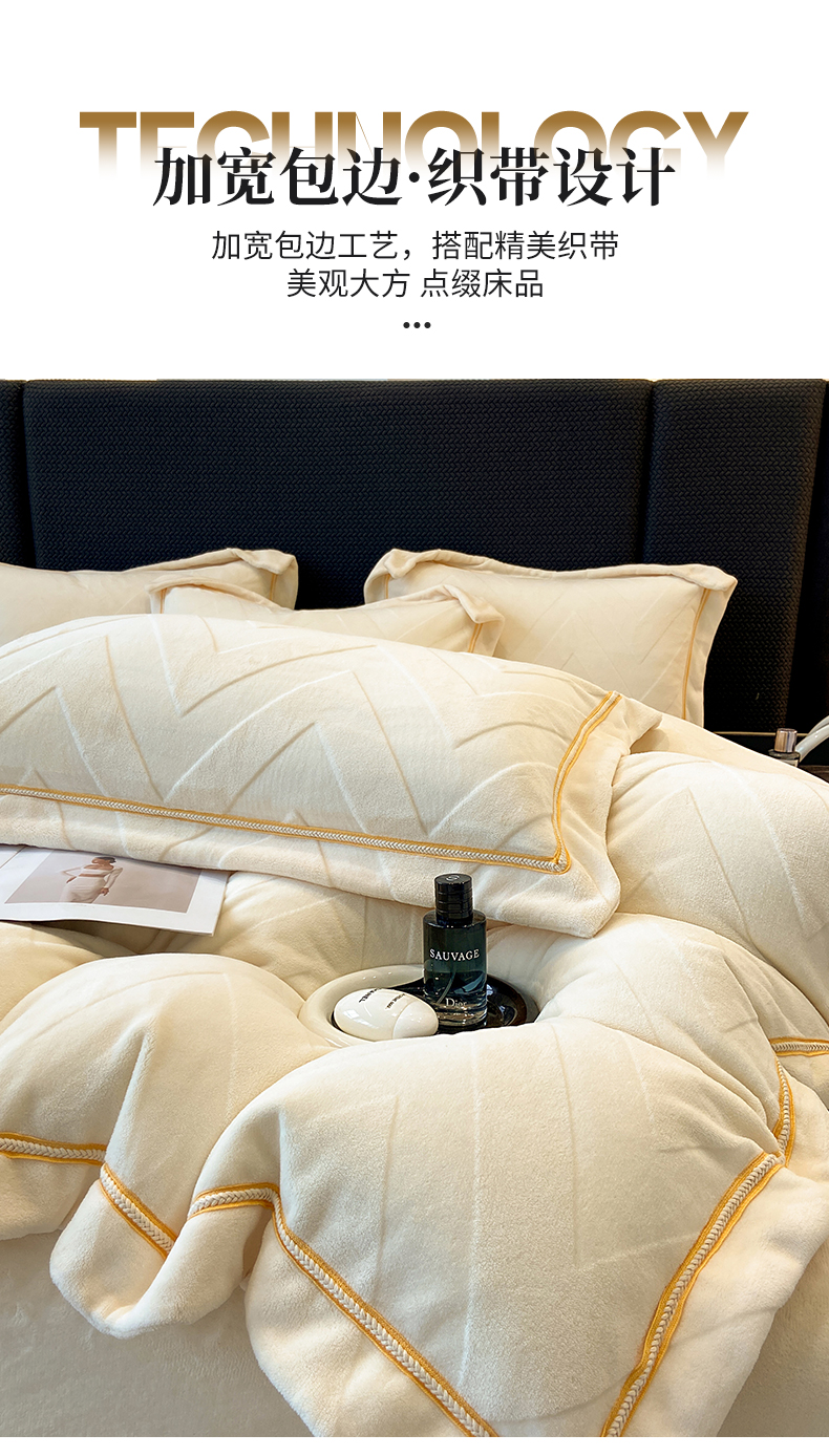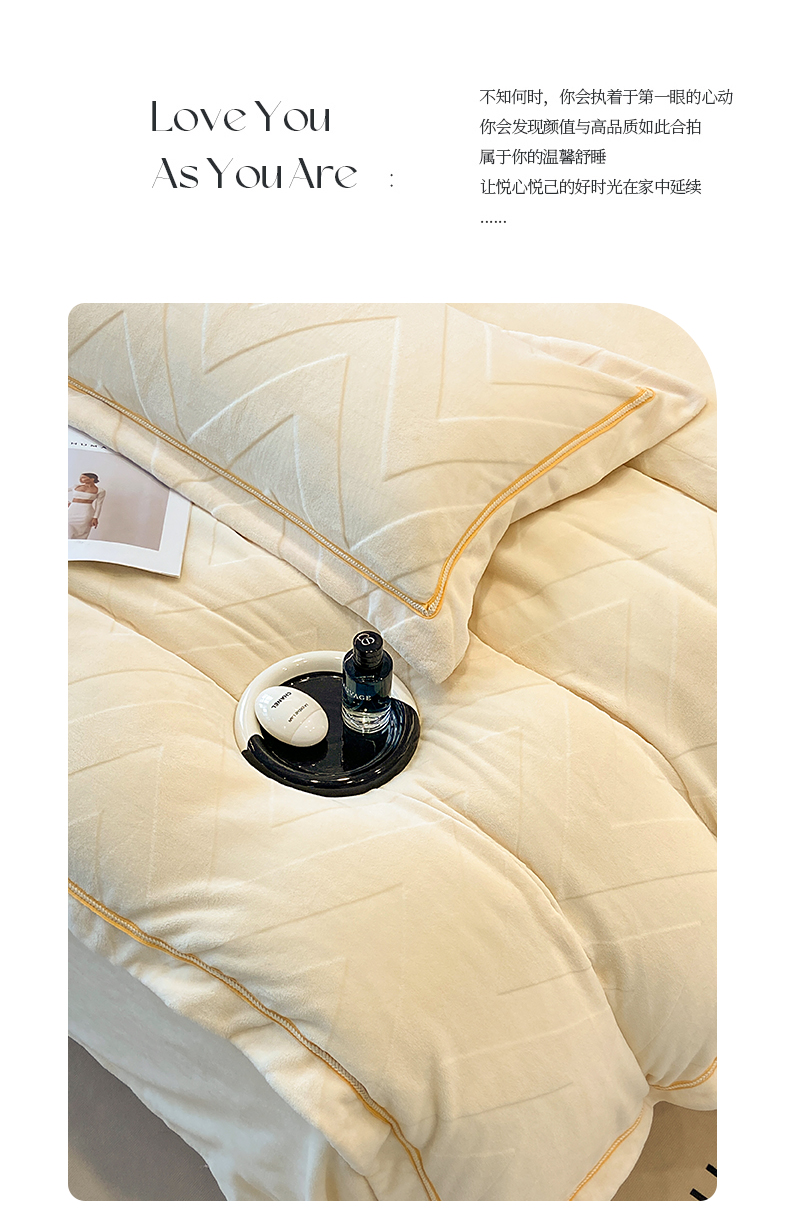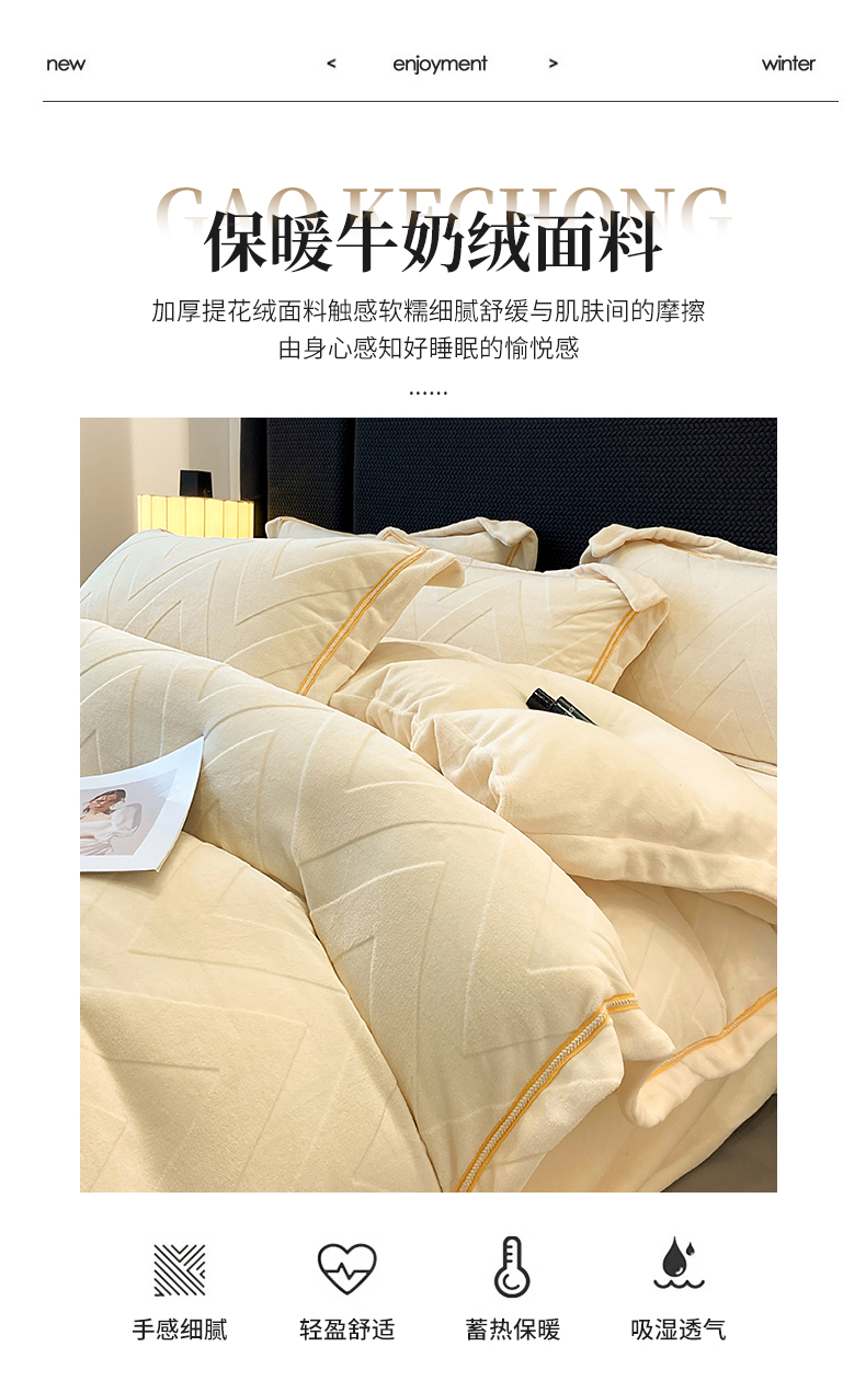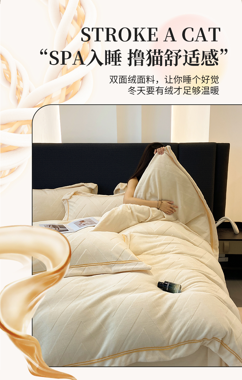 商品名称:家居1号 2024新款冬季高端剪花230克全消光工艺牛奶绒宝宝绒珊瑚绒婴儿绒刺绣轻奢四件套床单被套-简尚 简尚-奶白