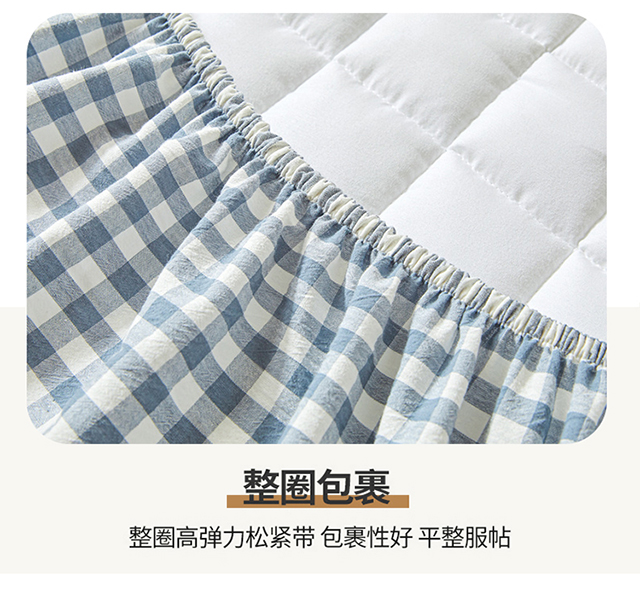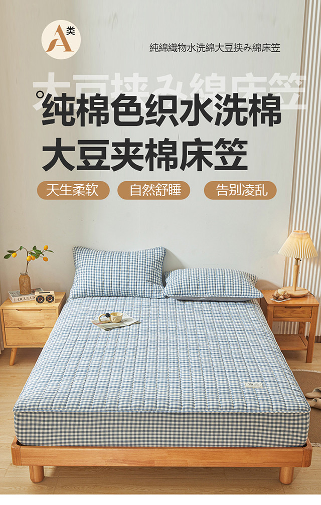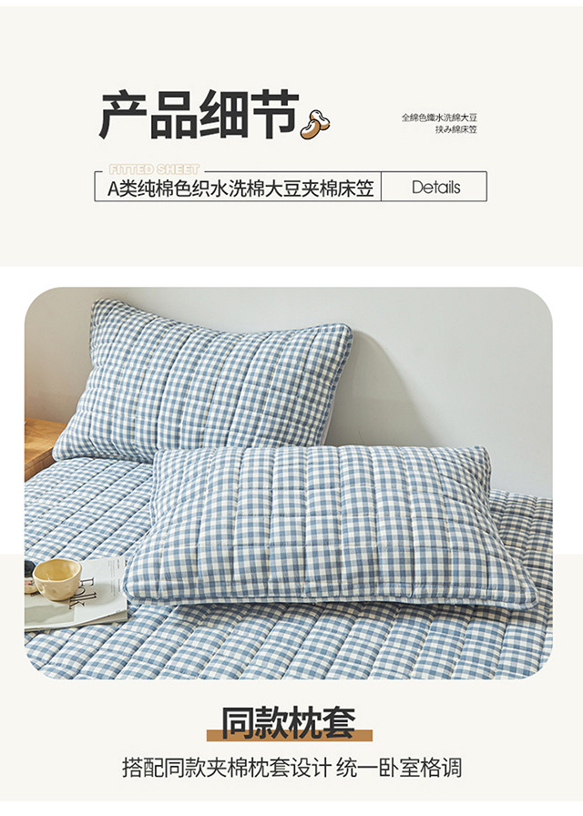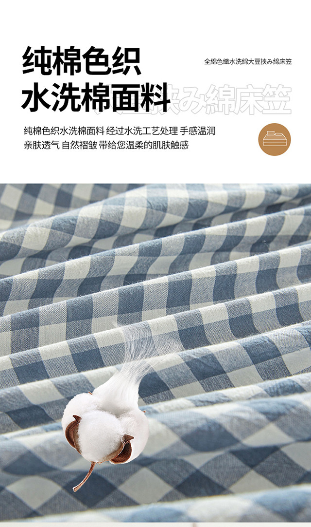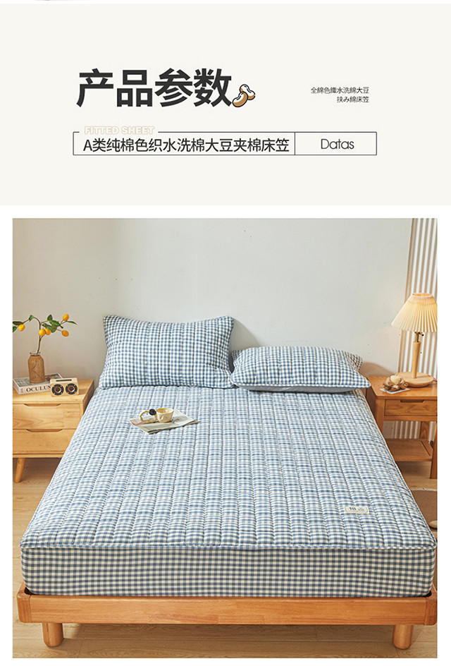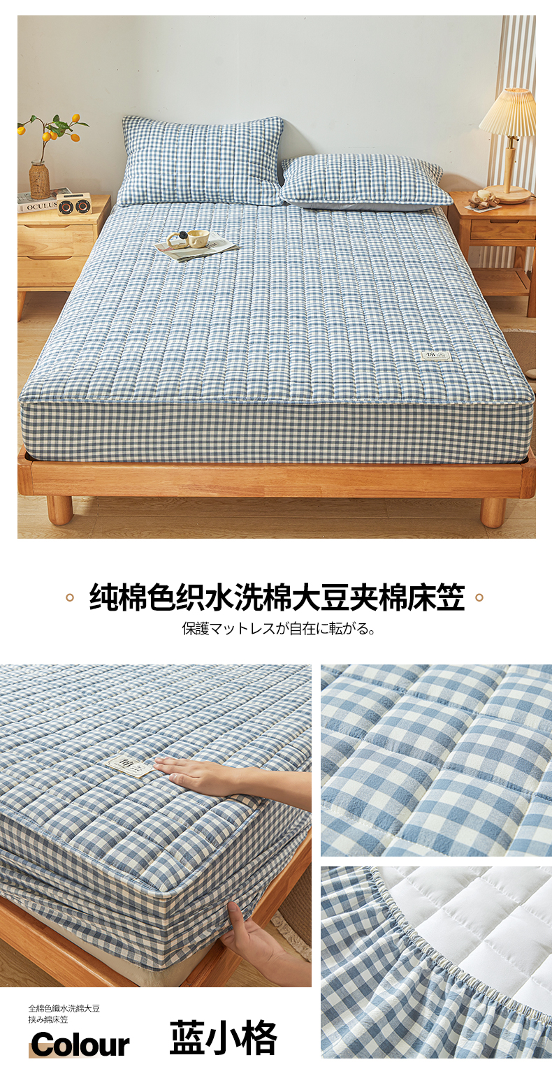 多谷家纺 2023新款纯棉色织水洗棉大豆夹棉床笠 蓝小格
