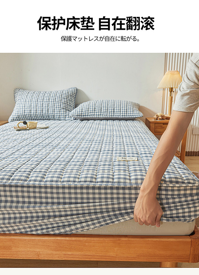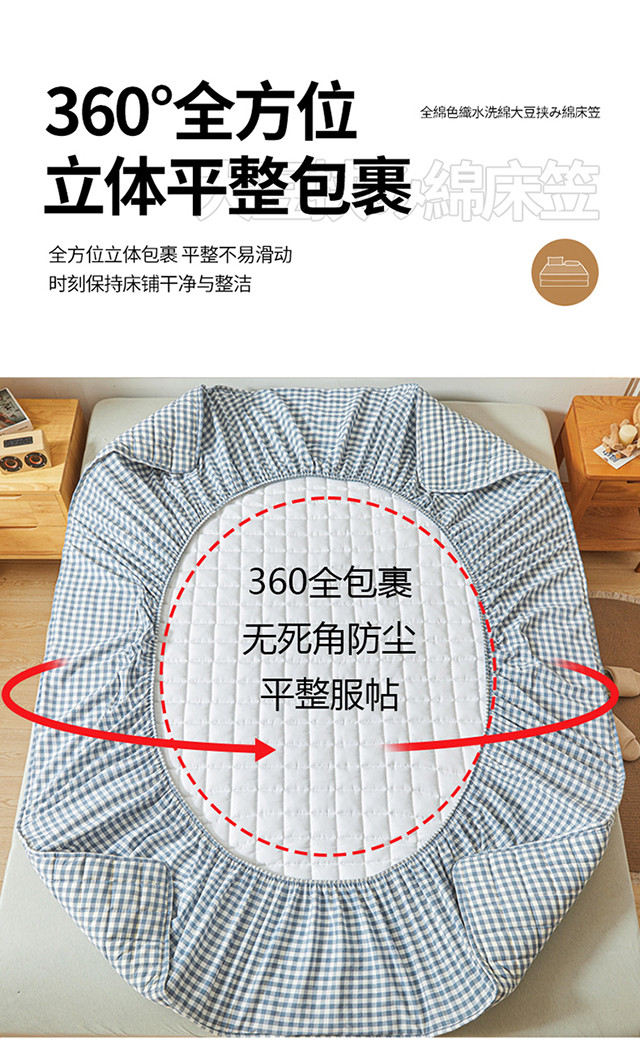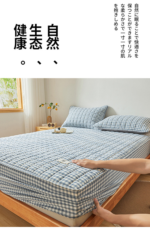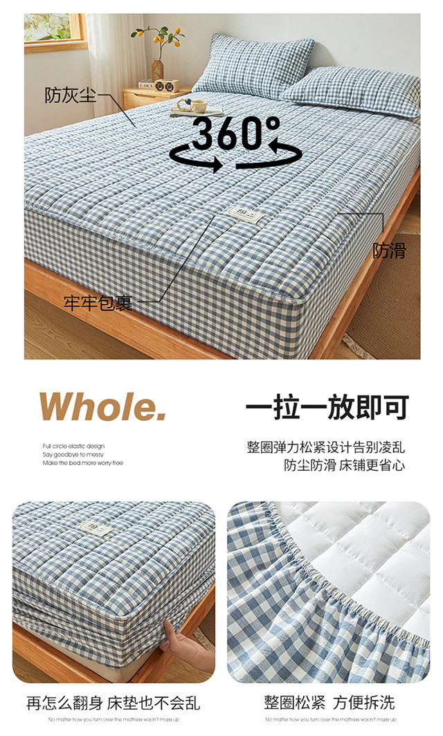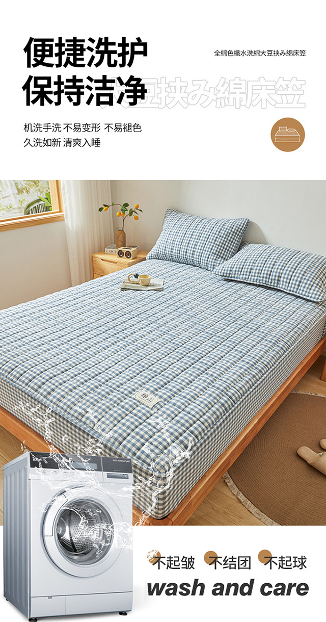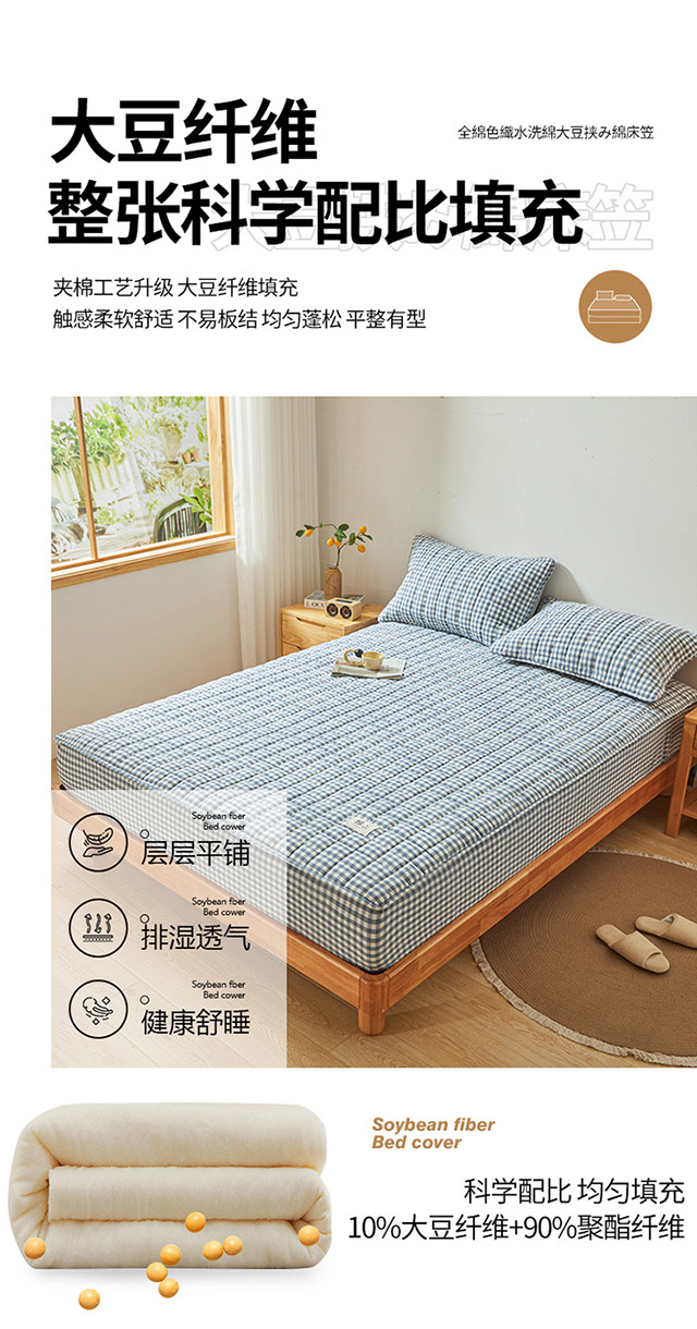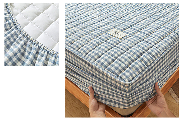 多谷家纺 2023新款纯棉色织水洗棉大豆夹棉床笠 蓝小格