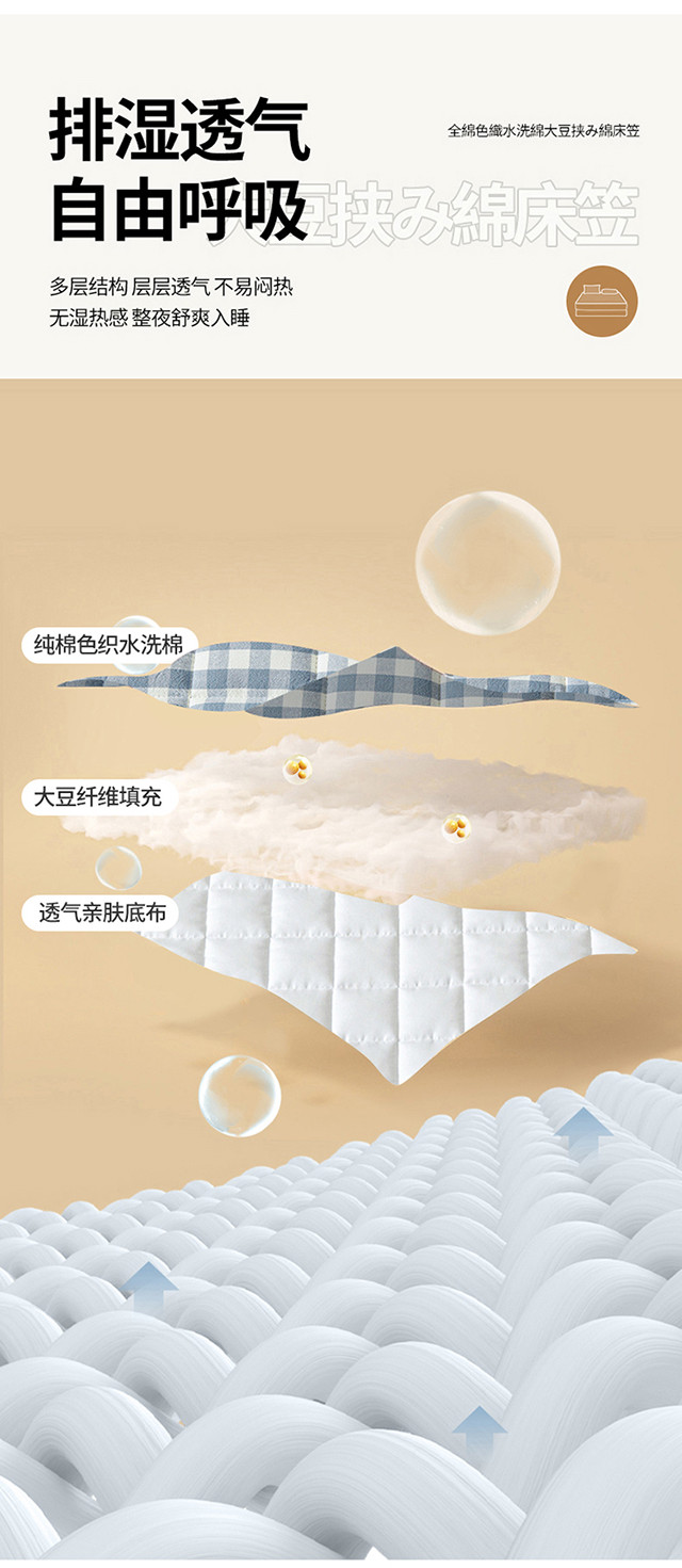 (总)多谷家纺 2026新款纯棉全棉色织水洗棉大豆夹棉床笠三件套,奶昔白,卡其,浅牛仔蓝,安娜灰,雾霾蓝,柠檬黄,苹果绿,浅豆沙,清新粉