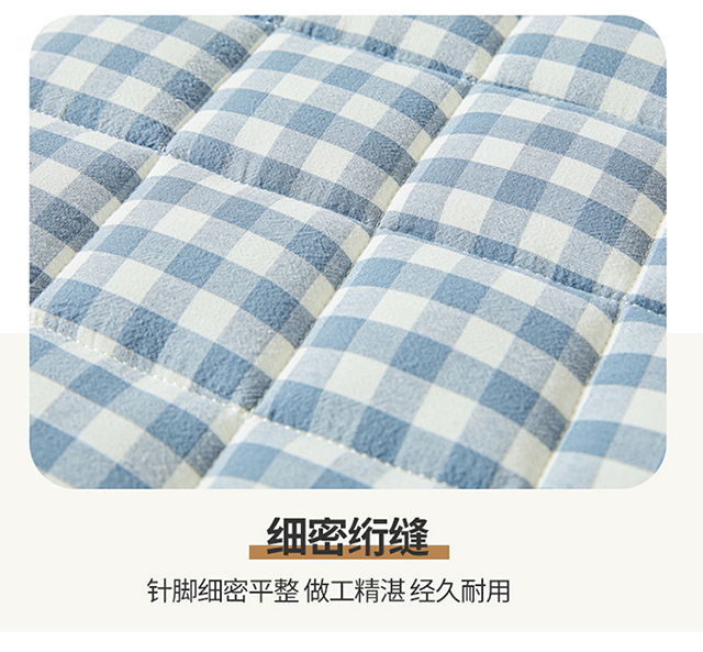 • 91家纺网 家纺一手货源 找家纺 多谷家纺 2023新款纯棉色织水洗棉大豆夹棉床笠 蓝小格