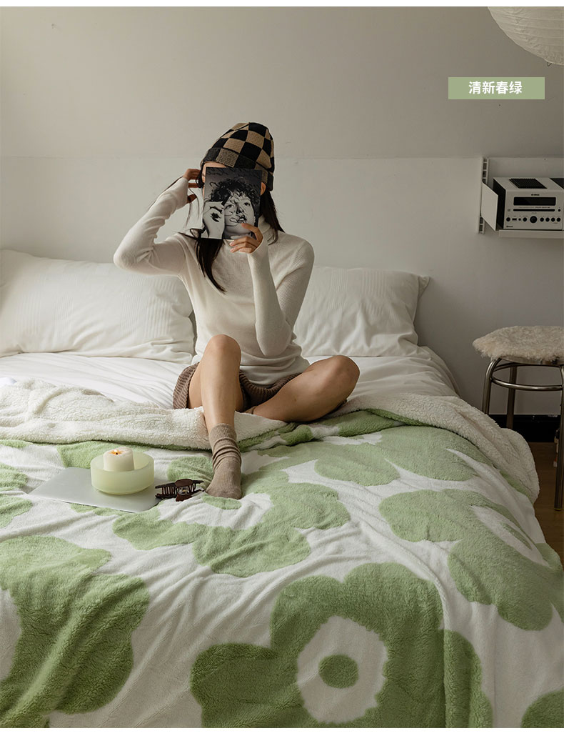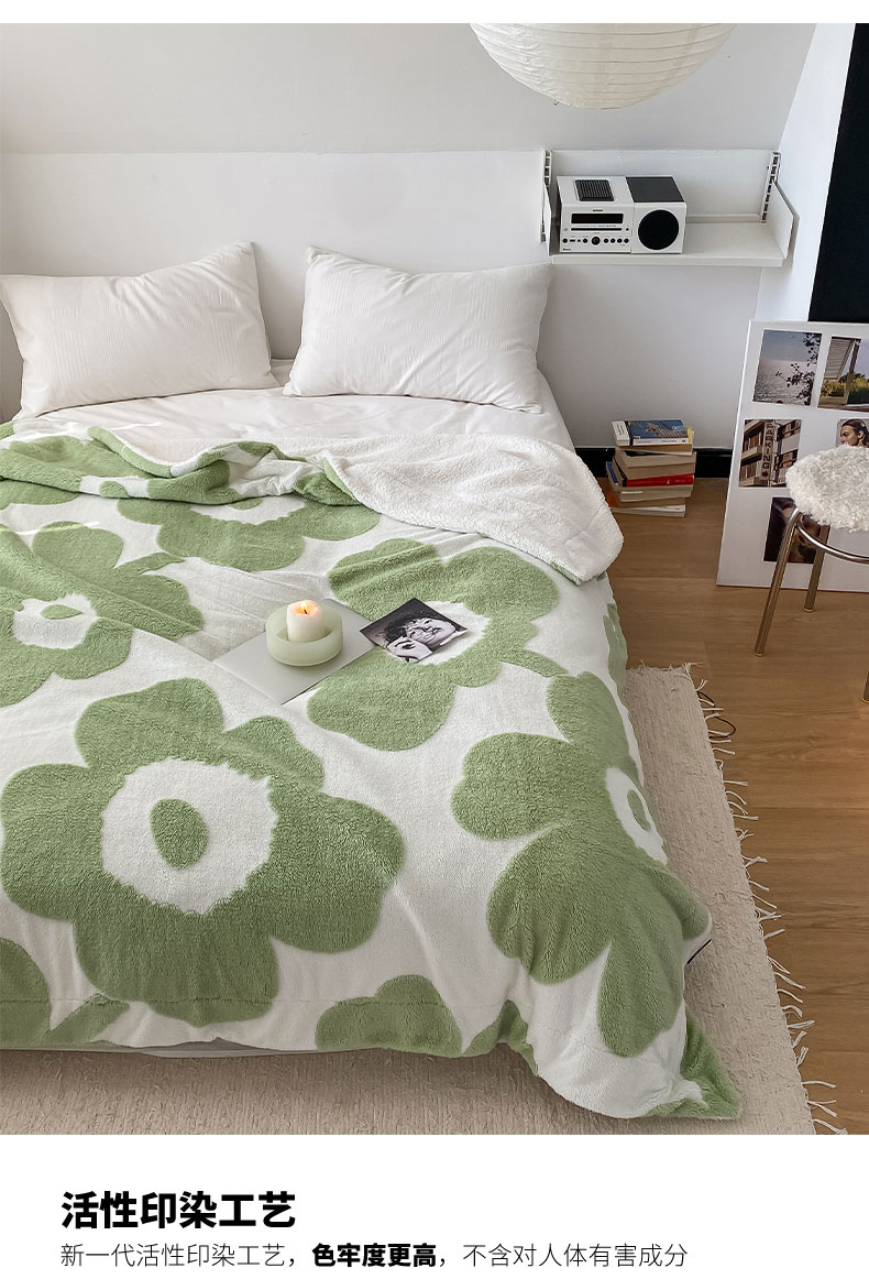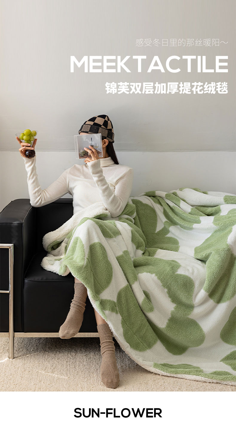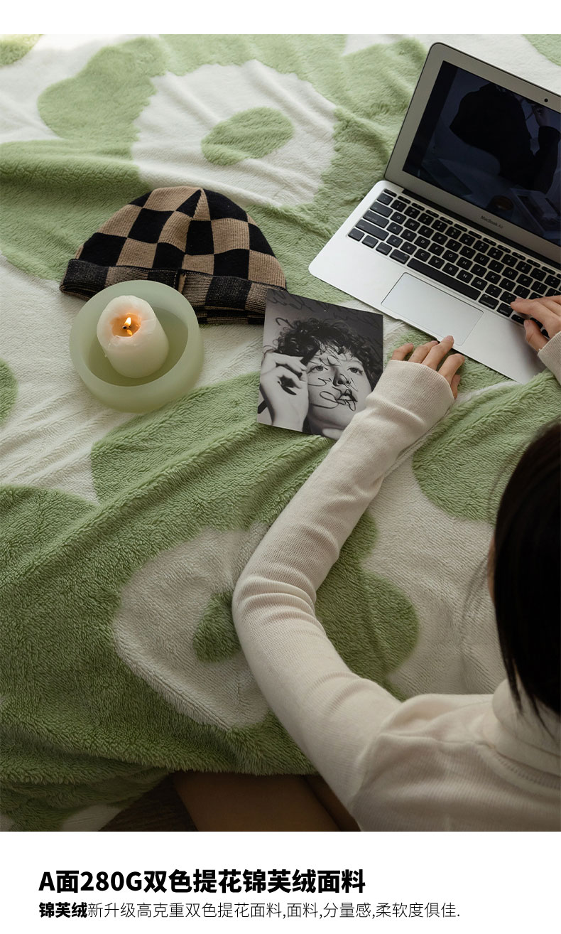 商品名称:安莱生活 2023新品专版锦芙绒太阳花毛毯 清新春绿
