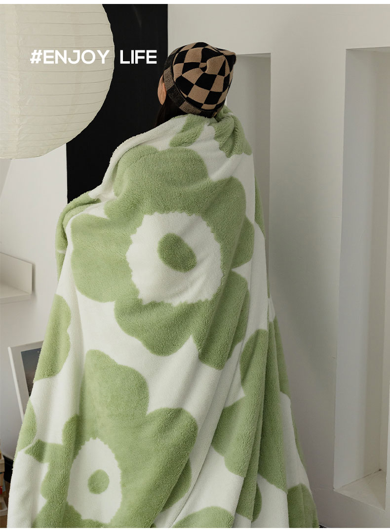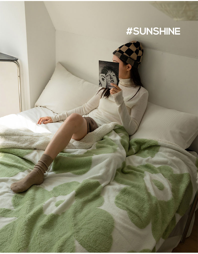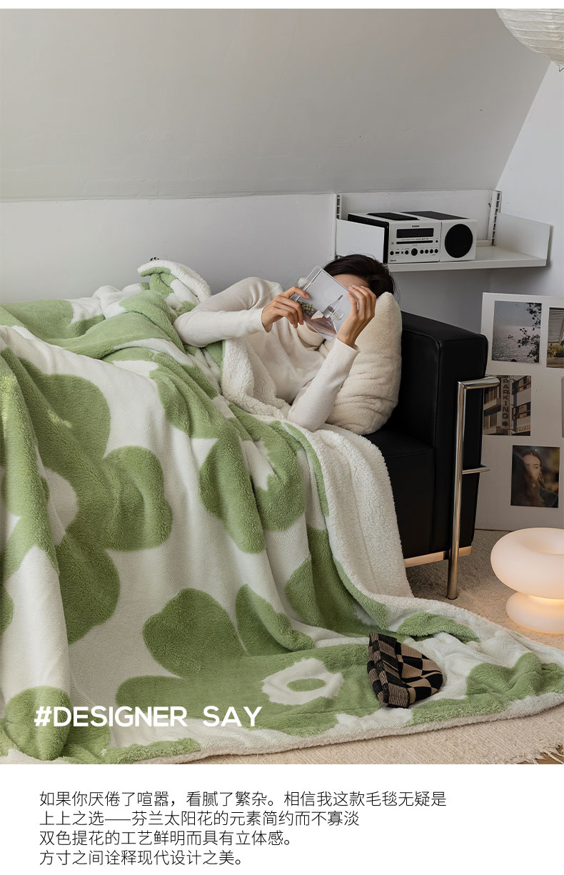 安莱生活 2023新品专版锦芙绒太阳花毛毯 清新春绿
