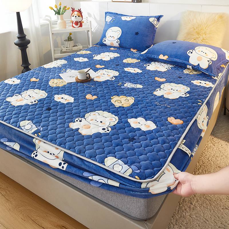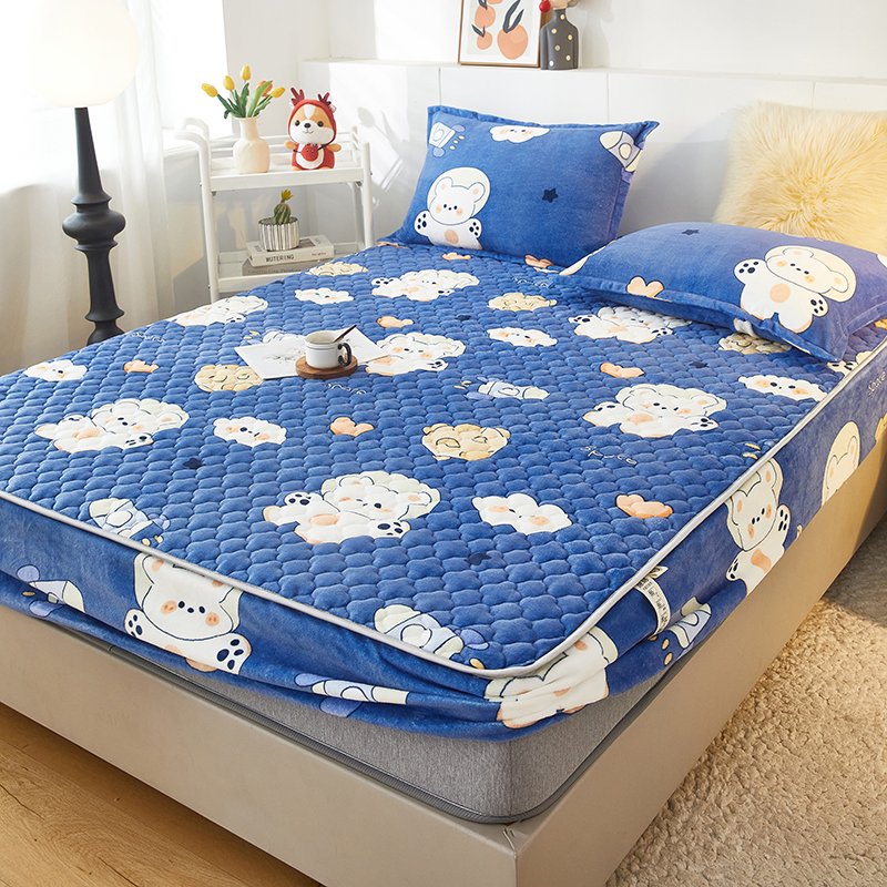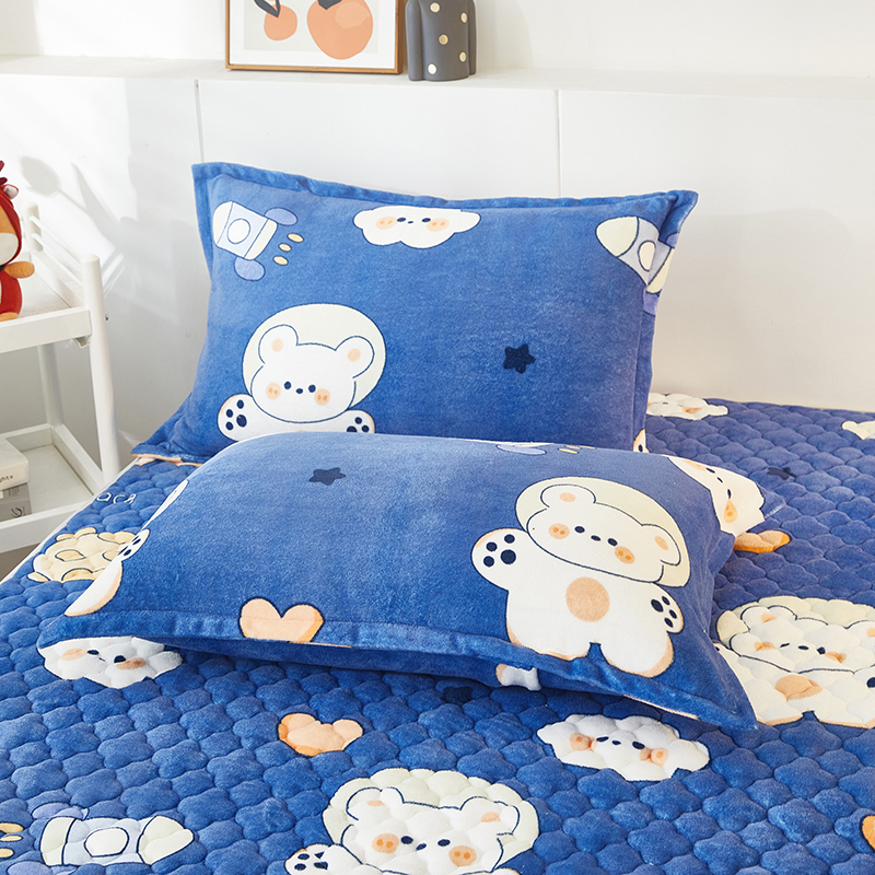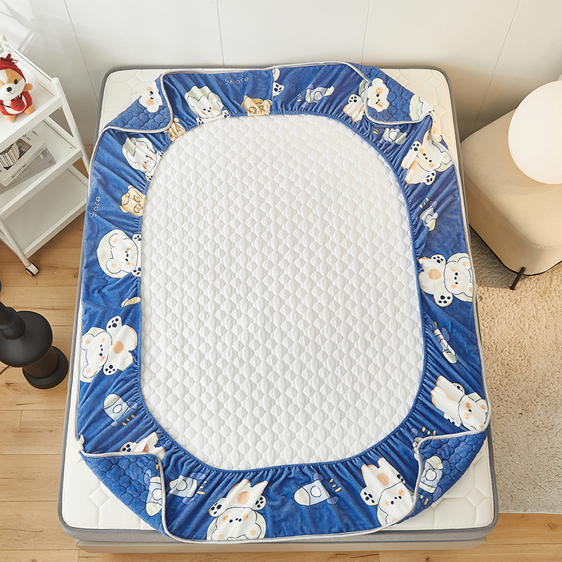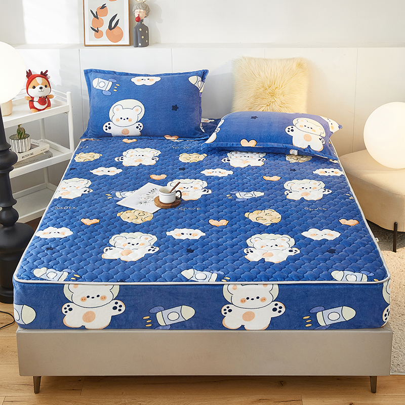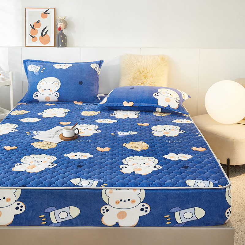 米柳家纺 2023直播爆款牛奶绒夹棉床笠 太空熊