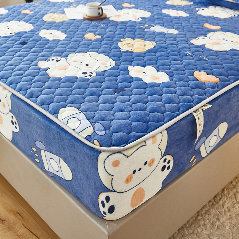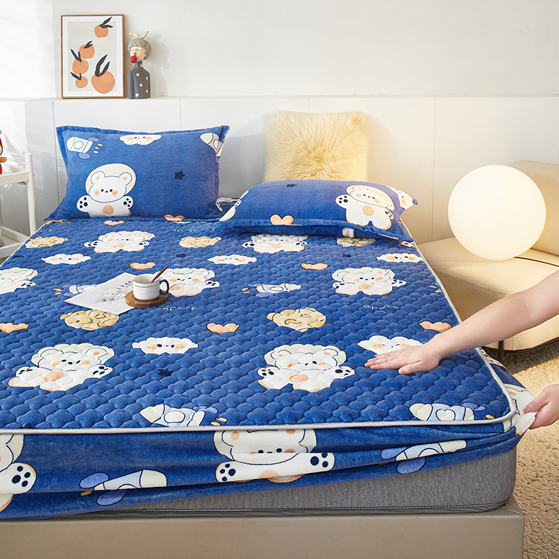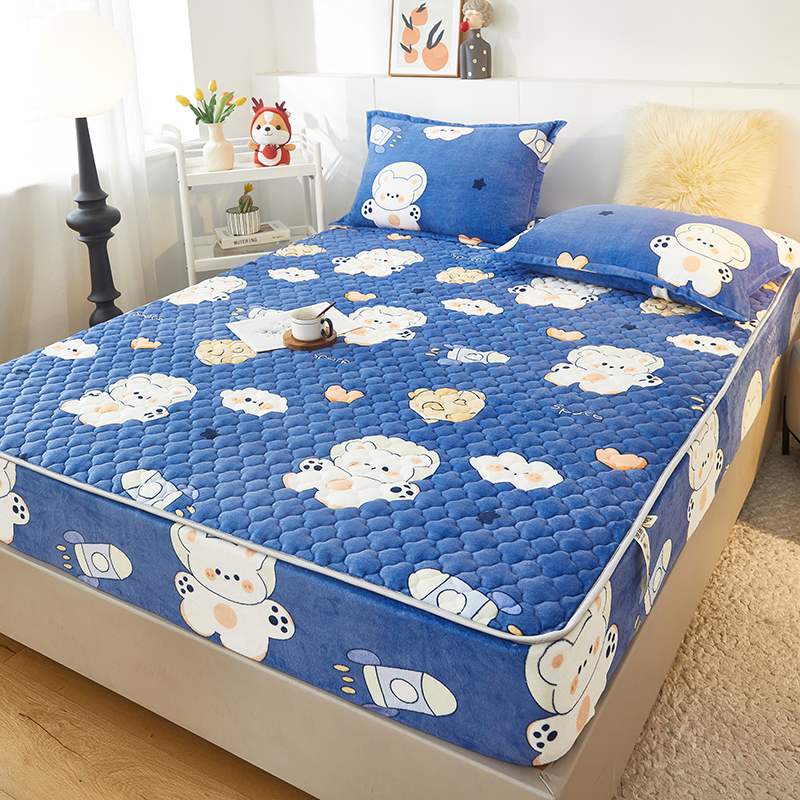 商品名称:米柳家纺 2023直播爆款牛奶绒夹棉床笠 太空熊