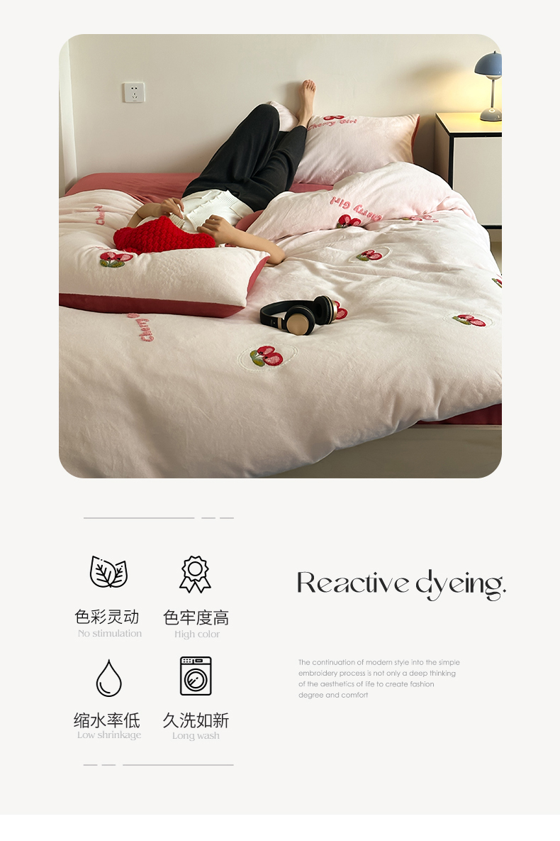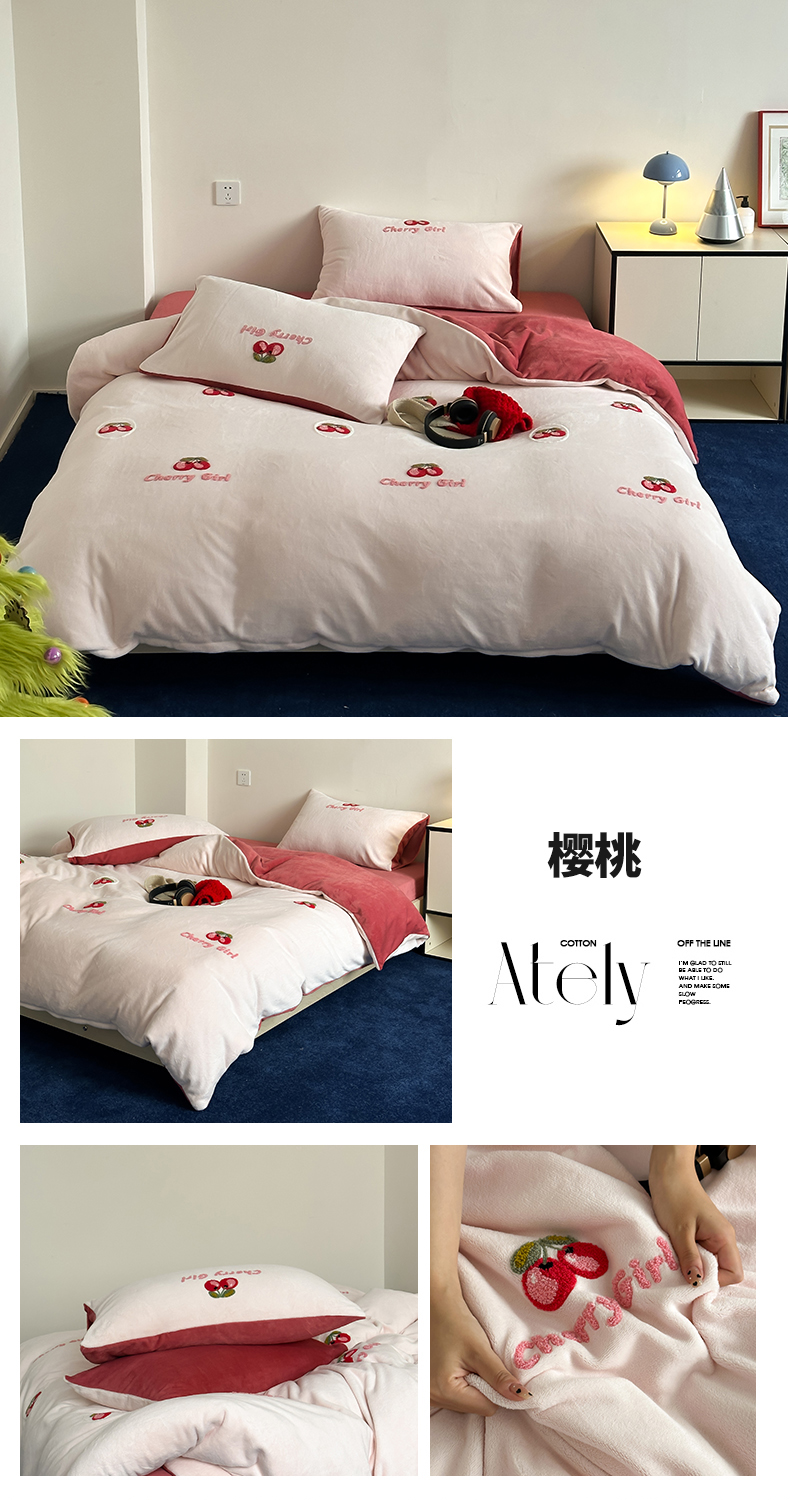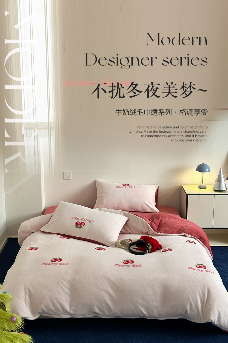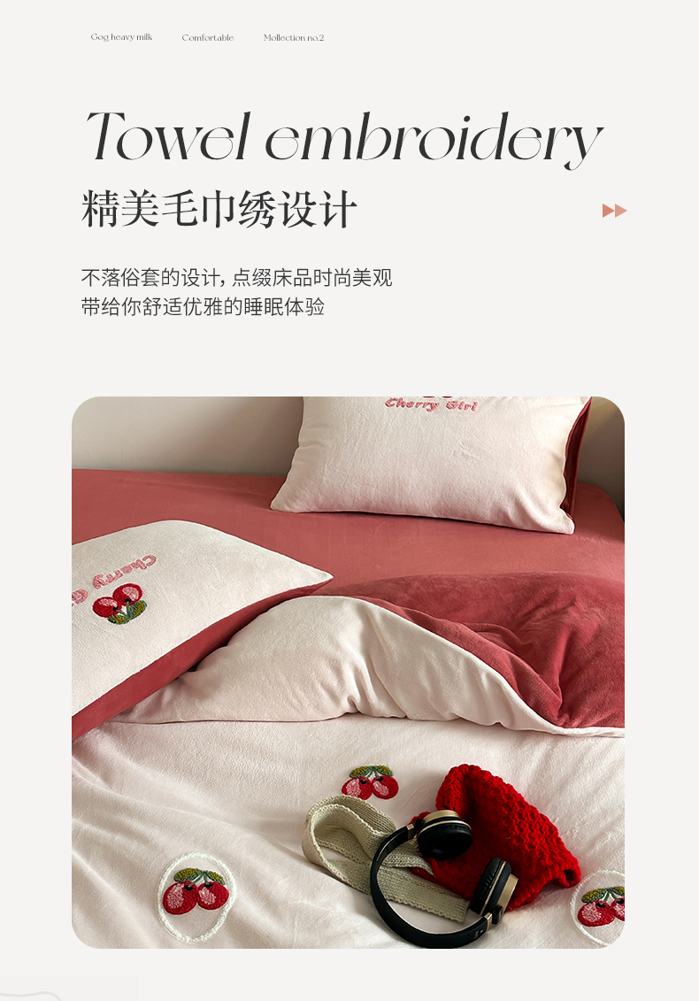当前位置: 91家纺网 > 商品网购 > 床品套件 > 四件套 > 牛奶绒四件套 > 时年家纺 2023新款高克重牛奶绒立体毛巾绣四件套 充值会员优惠5元 樱桃