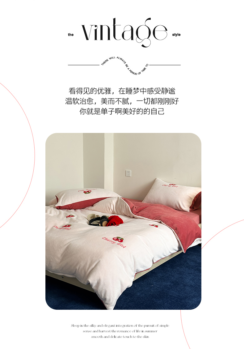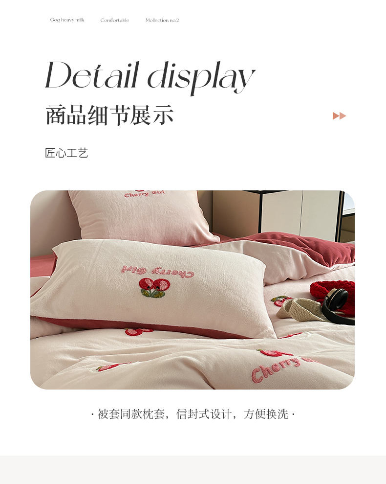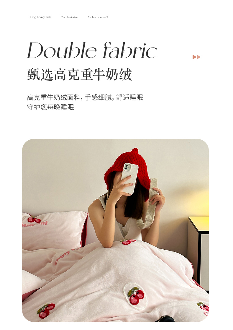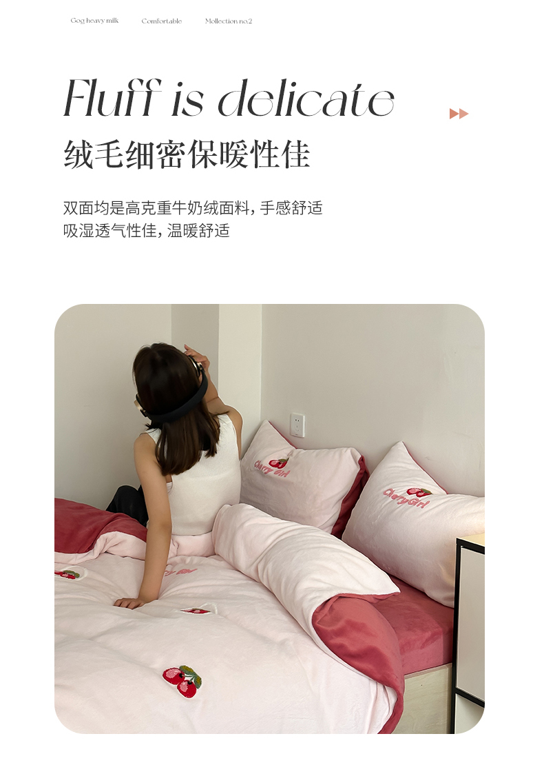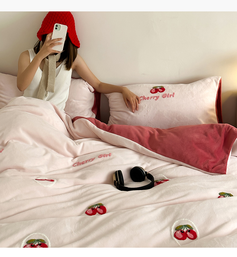 当前位置: 91家纺网 > 商品网购 > 床品套件 > 四件套 > 牛奶绒四件套 > 时年家纺 2023新款高克重牛奶绒立体毛巾绣四件套 充值会员优惠5元 樱桃