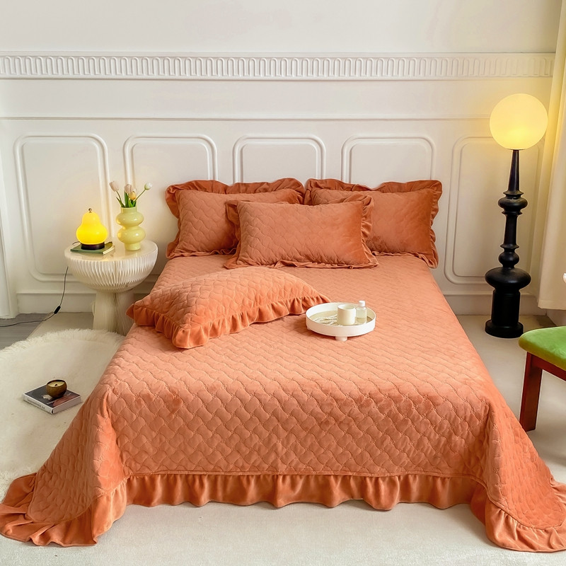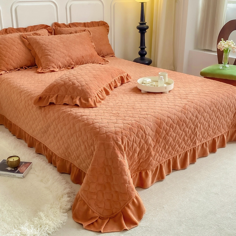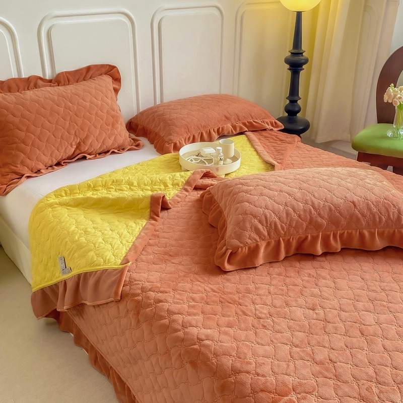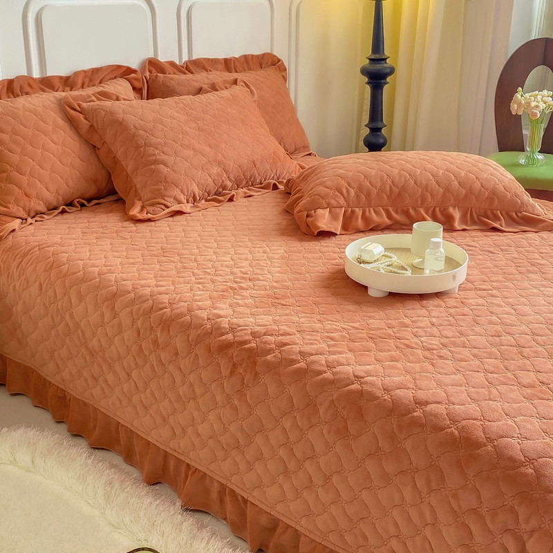 上喜 热卖牛奶绒珍珠床盖款三件套四件套 橙橘色