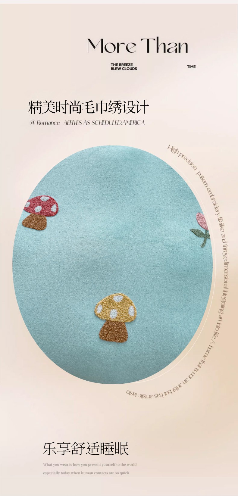菲儿家纺 2023新款牛奶绒毛巾绣四件套 小蘑菇-绿