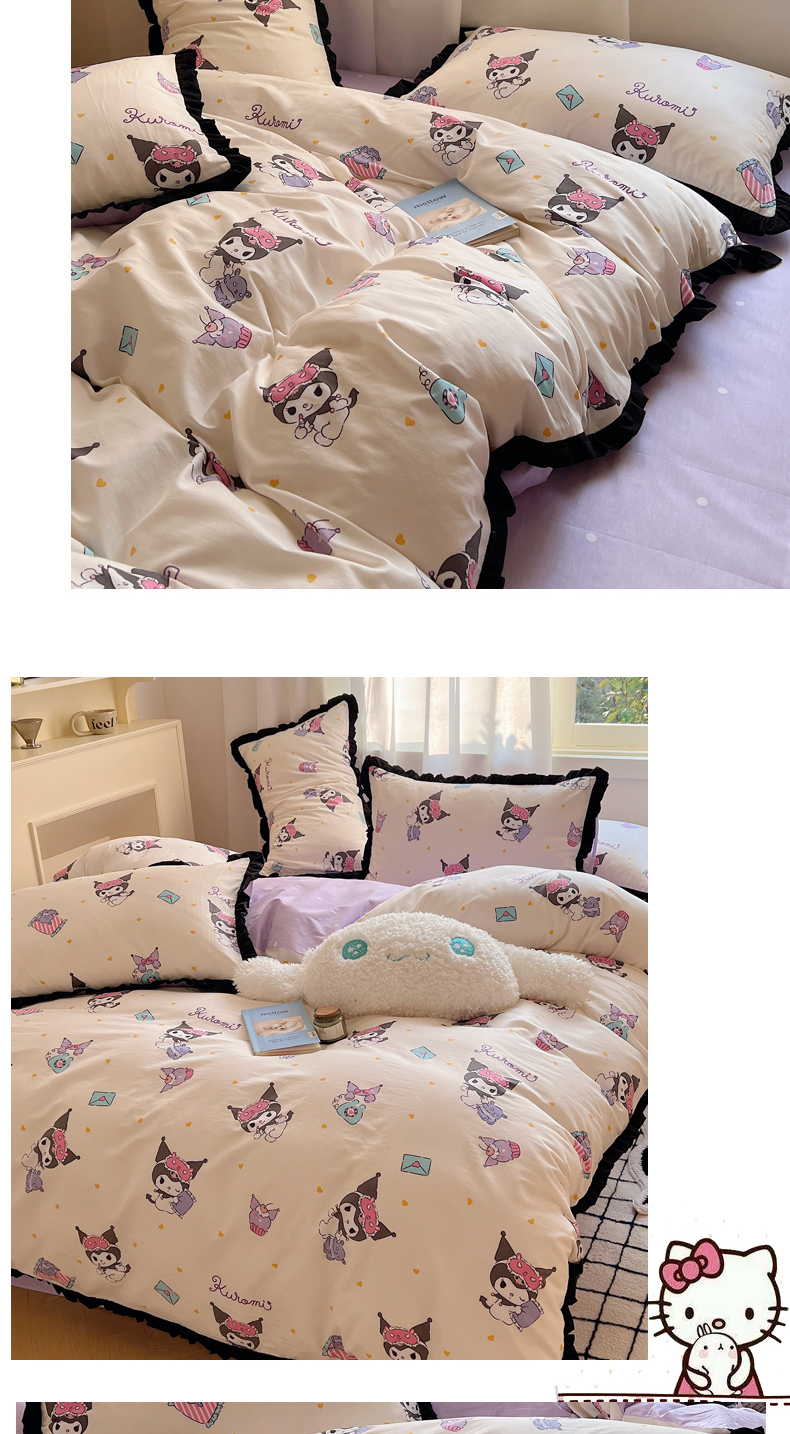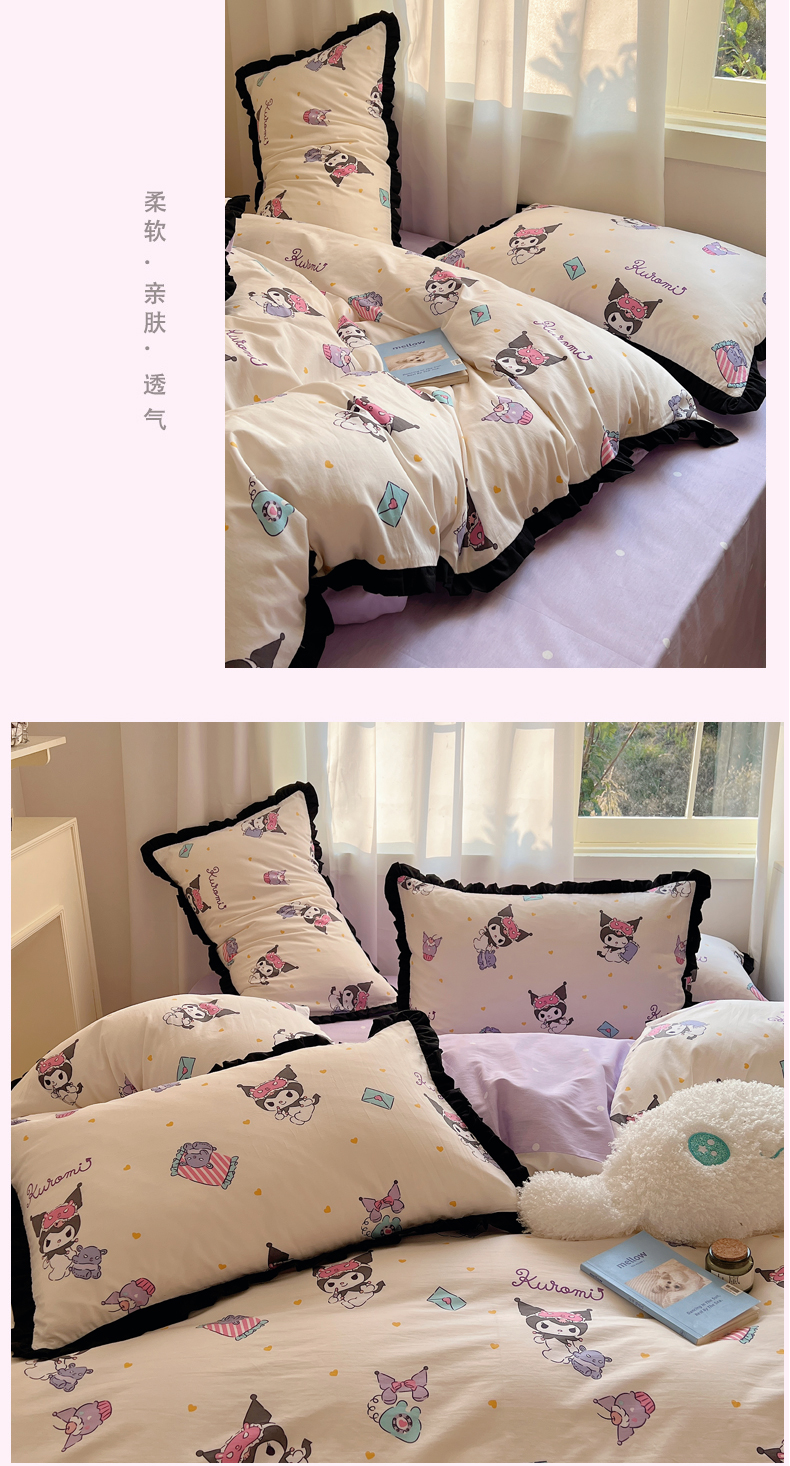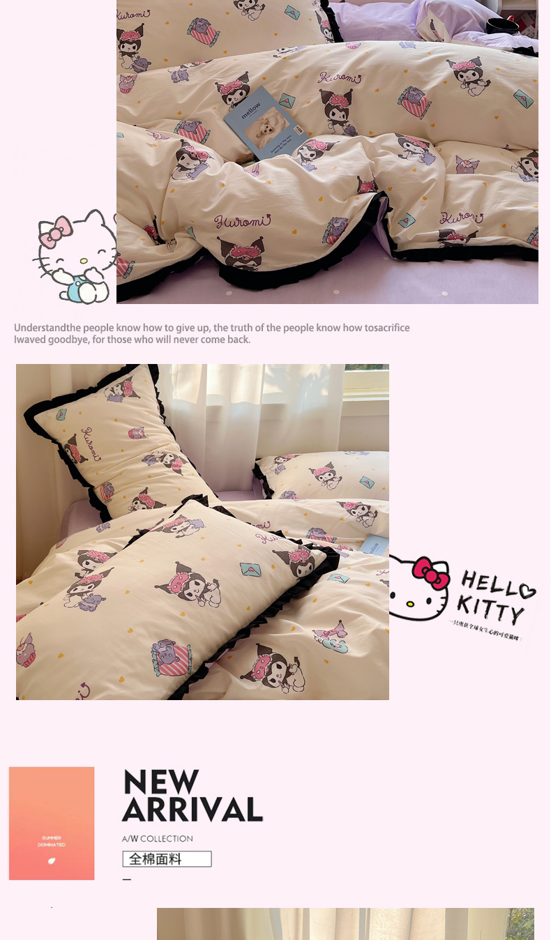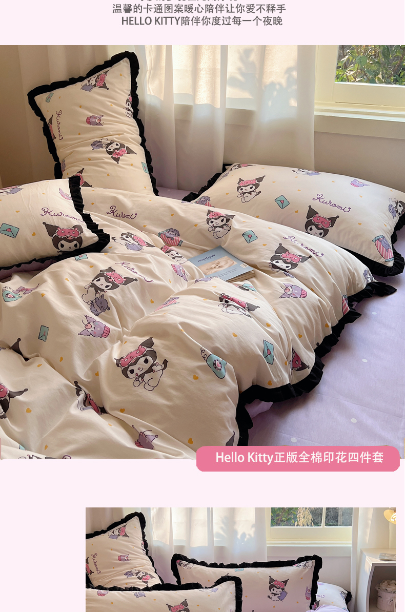 三朵家纺 2023新款全棉花边款三丽鸥系列四件套 库洛米伙伴