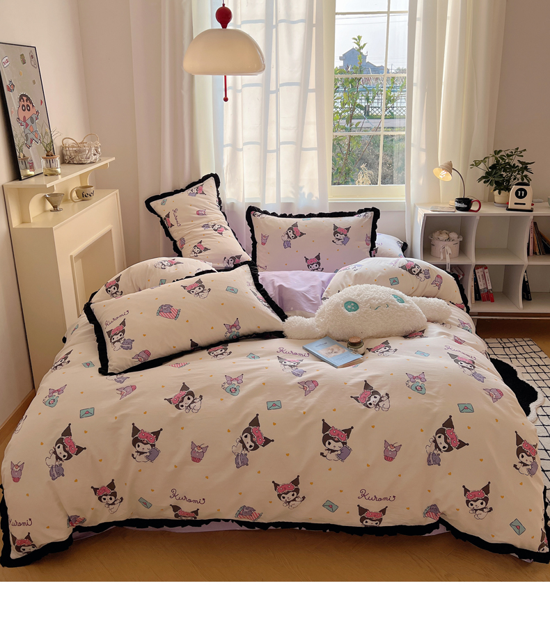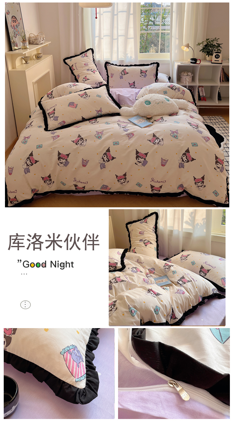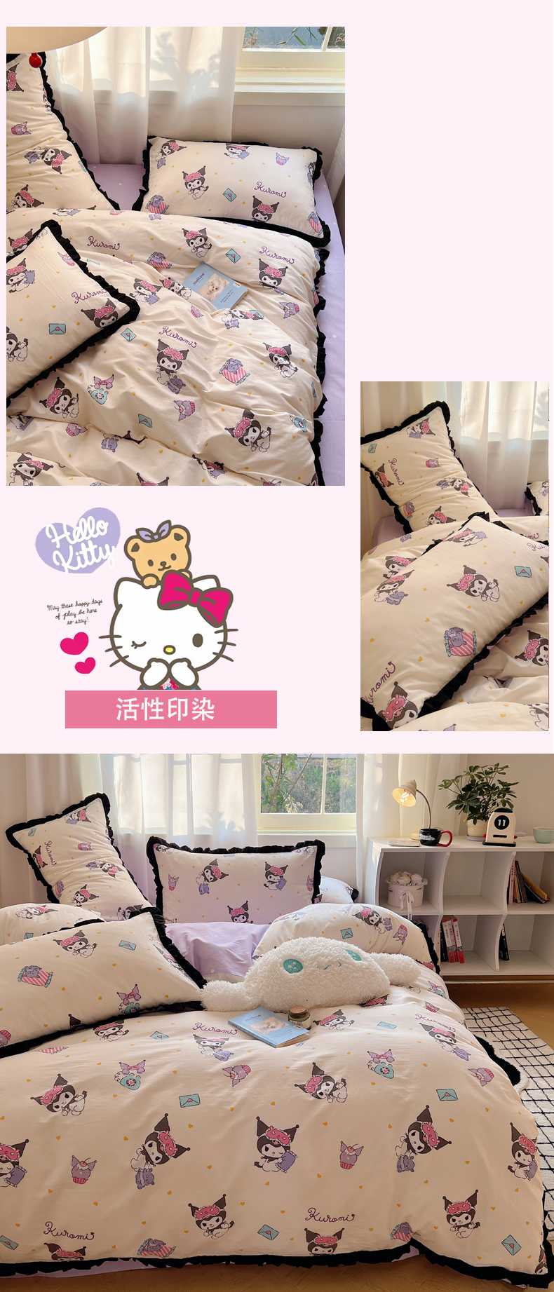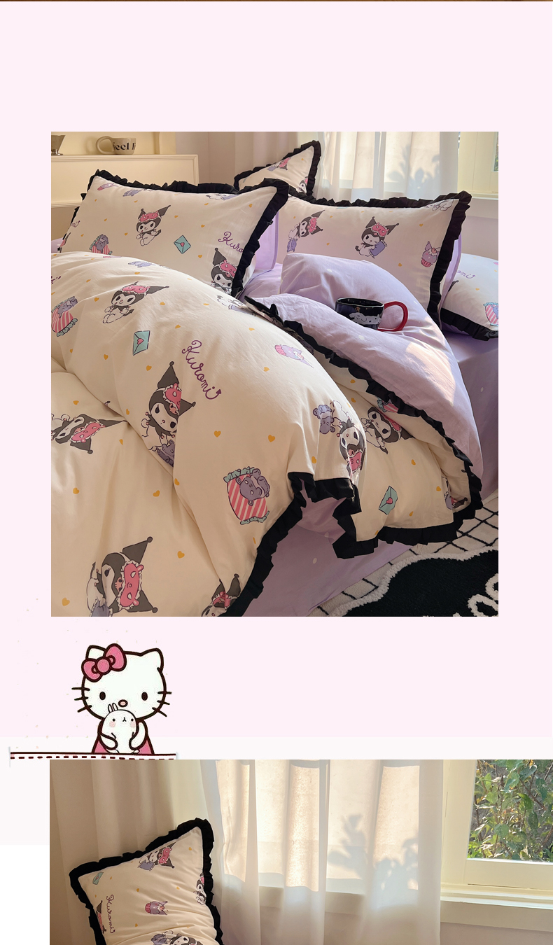 三朵家纺 2023新款全棉花边款三丽鸥系列四件套 库洛米伙伴