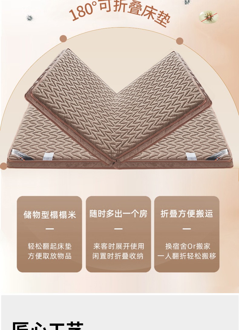 (总)时奥家纺 2023新款可拆慢回弹记忆棉竹炭海绵床垫,零压竹炭可拆卸