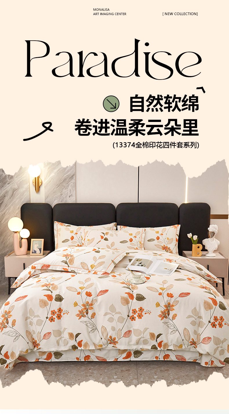 当前位置: 91家纺网 > 商品网购 > 床品套件 > 四件套 > 全棉普通四件套 > 名优家纺 新款13374全棉印花四件套 浅花悠悠