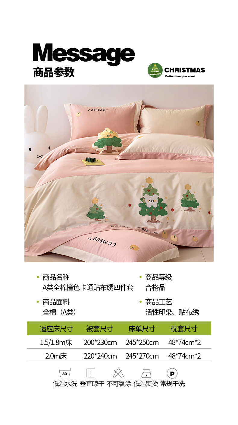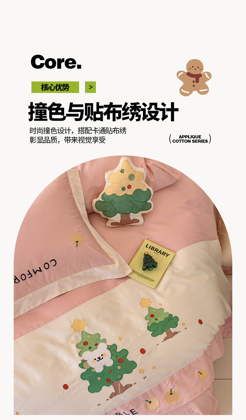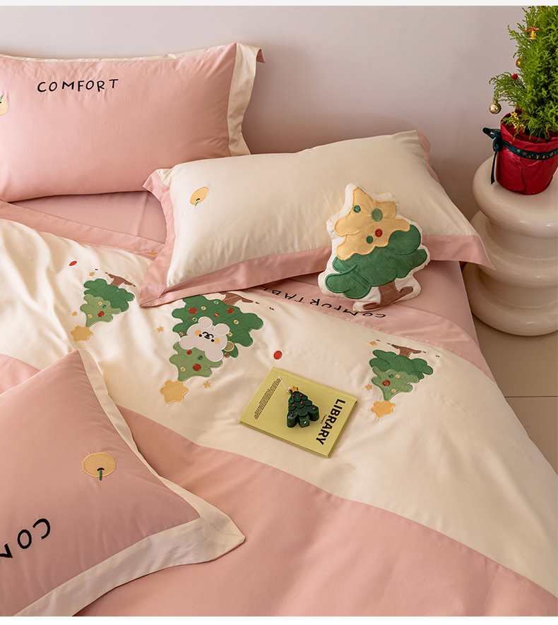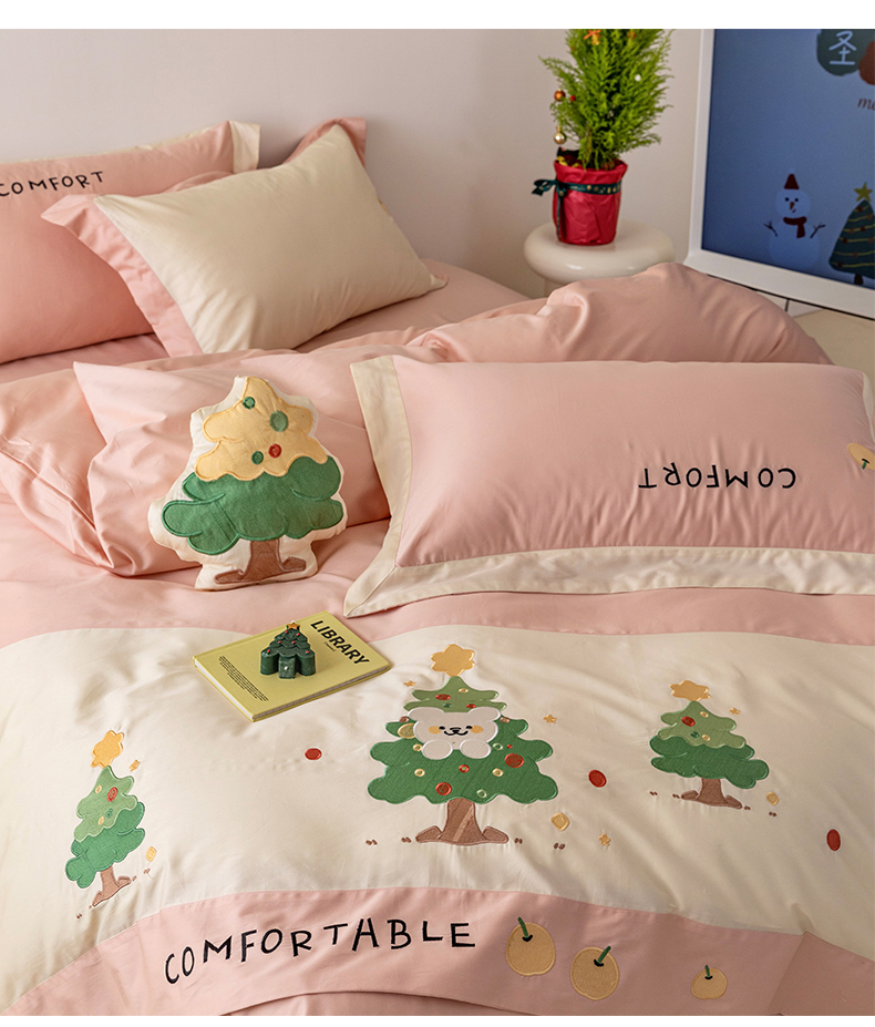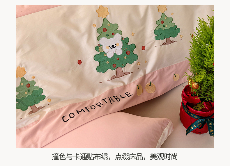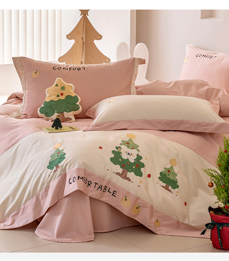 商品名称:懒猫 2024新款【贝加尔】100支全棉贴布绣四件套 贝加尔-洛塔粉