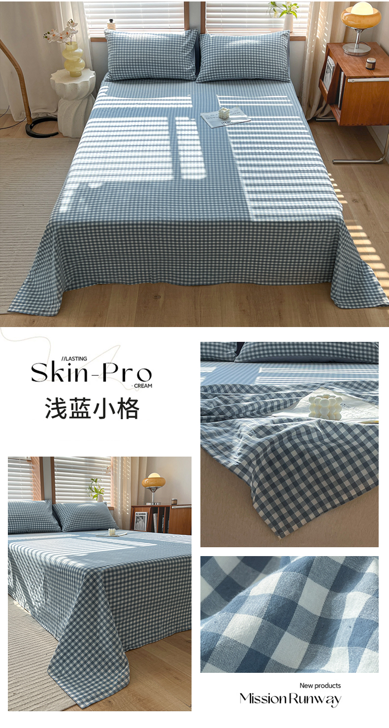 启程家纺 2026新款全棉A类水洗棉多规格四件套单品-单床单 浅蓝小格