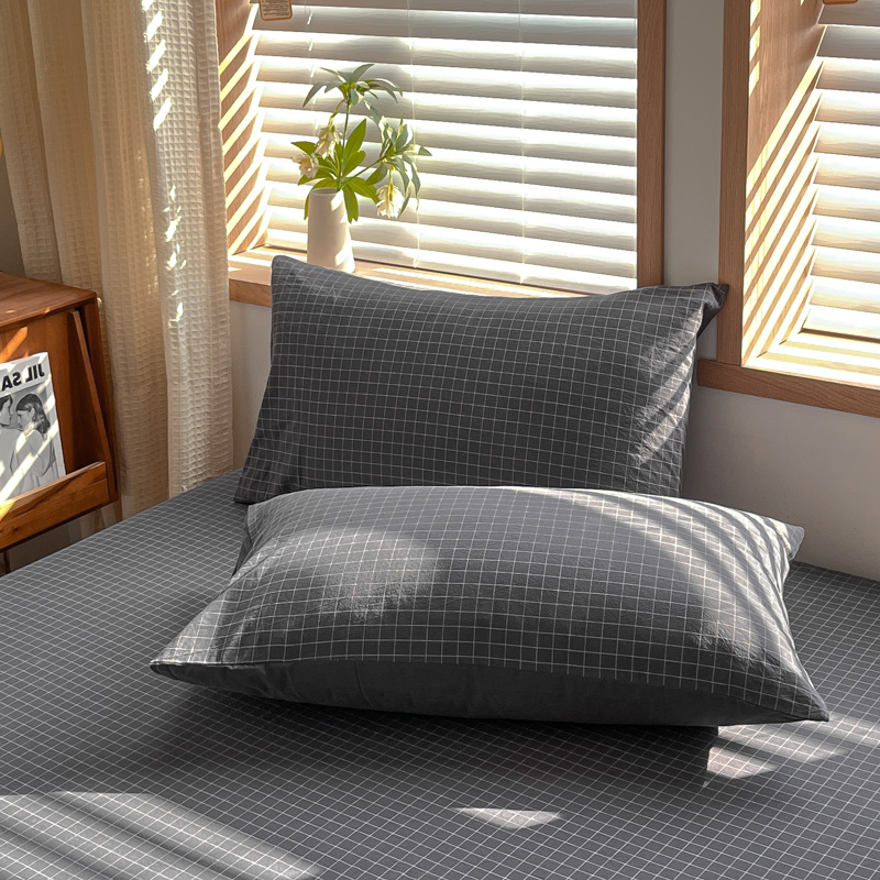 启程家纺 2026新款全棉A类水洗棉多规格四件套单品-单枕套 灰小方格