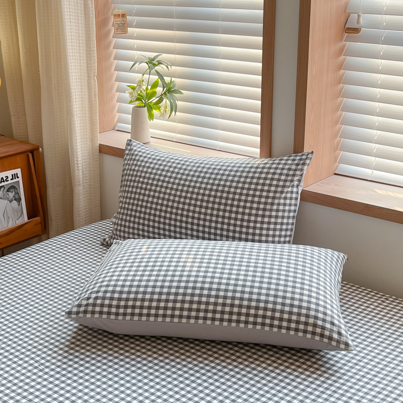 启程家纺 2026新款全棉A类水洗棉多规格四件套单品-单枕套 灰小格
