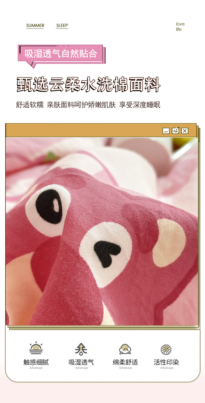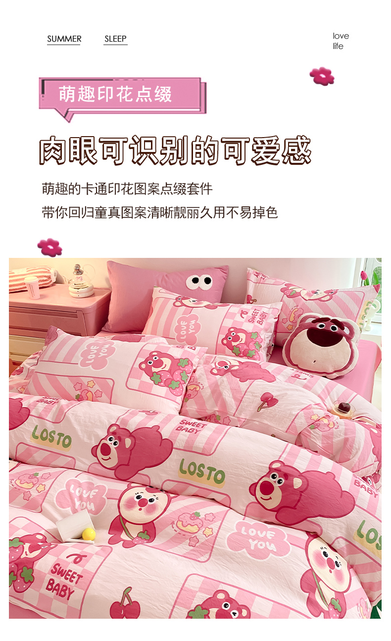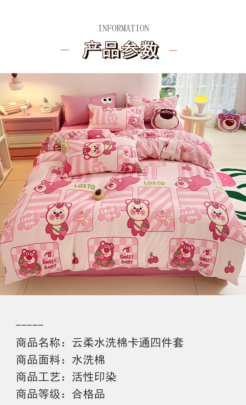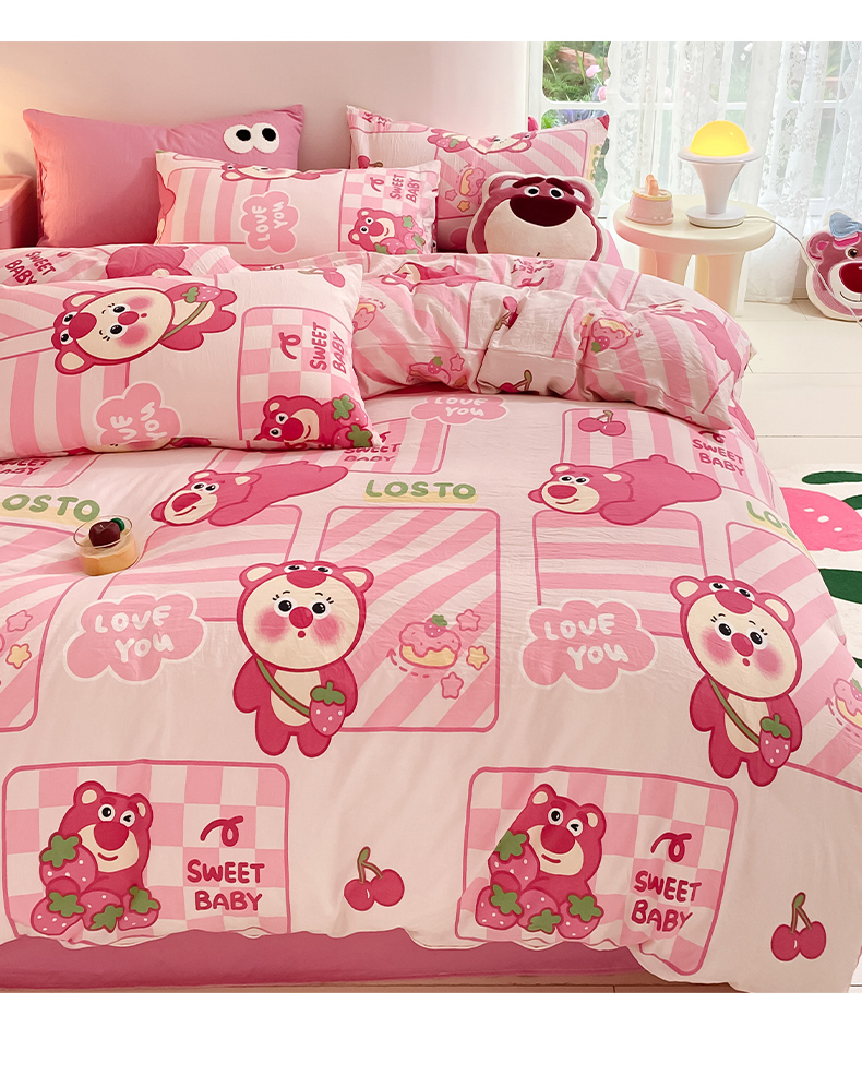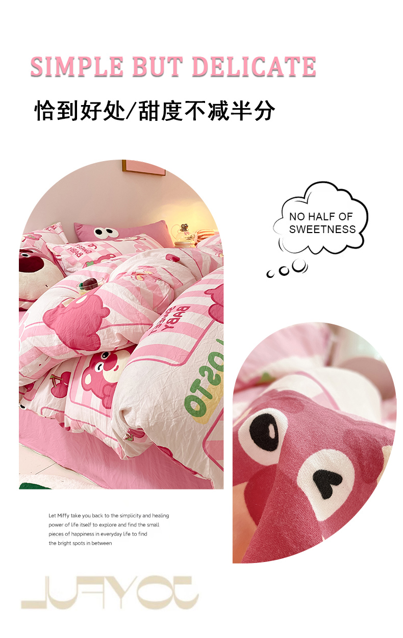 当前位置: 91家纺网 > 商品网购 > 床品套件 > 四件套 > 水洗棉四件套 > 葡萄家 2024新款双层纱云柔水洗棉萌趣卡通系列四件套(提供买家秀联系客服) 草莓小熊