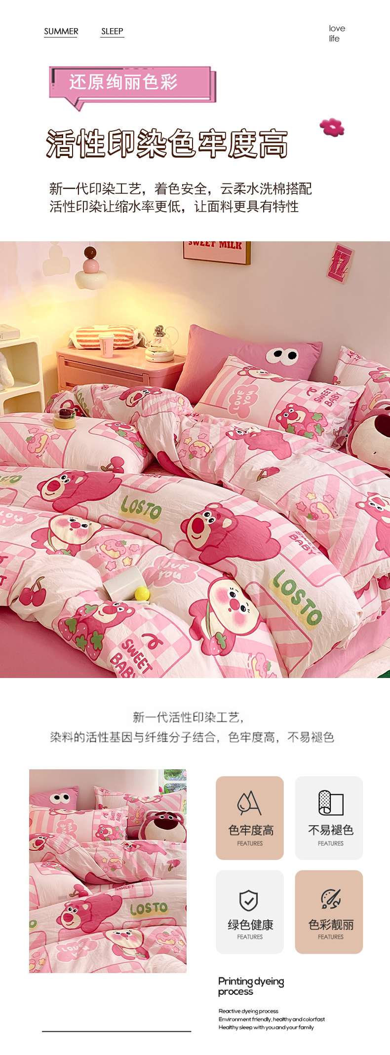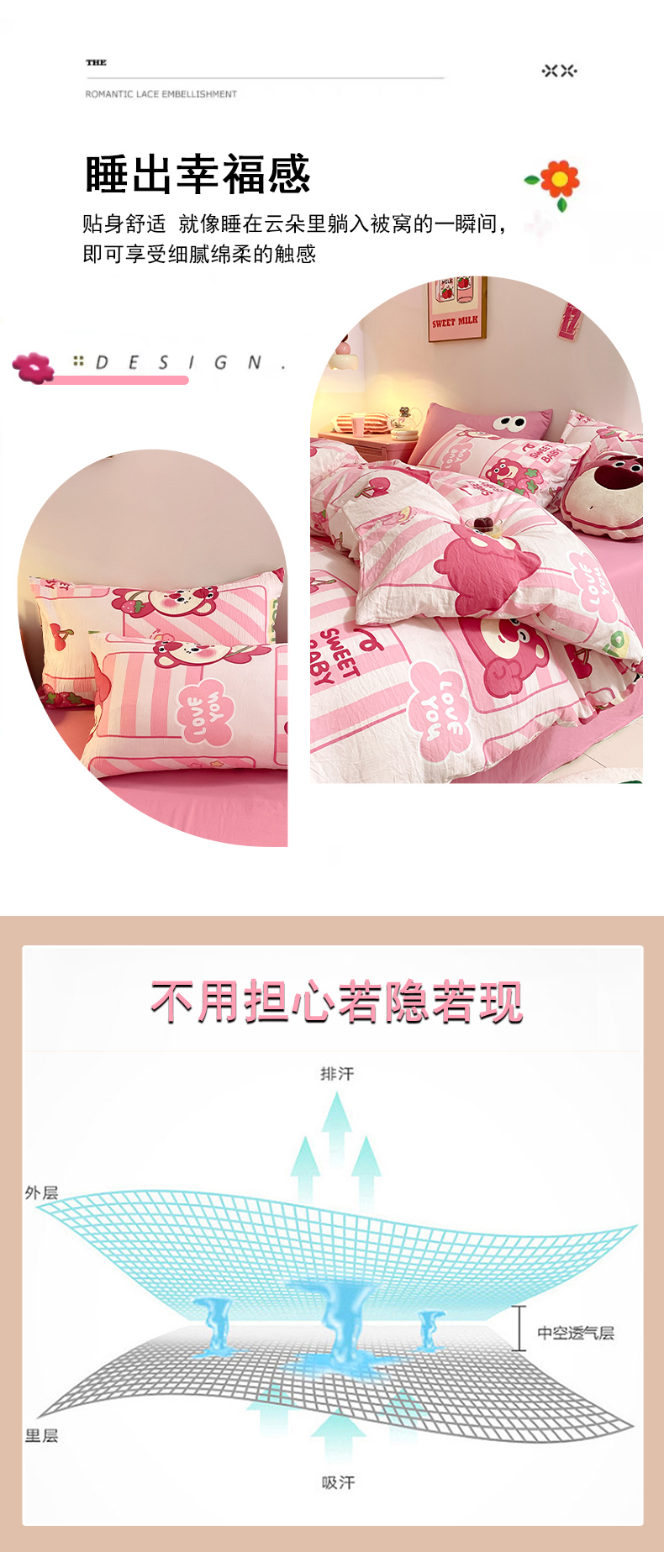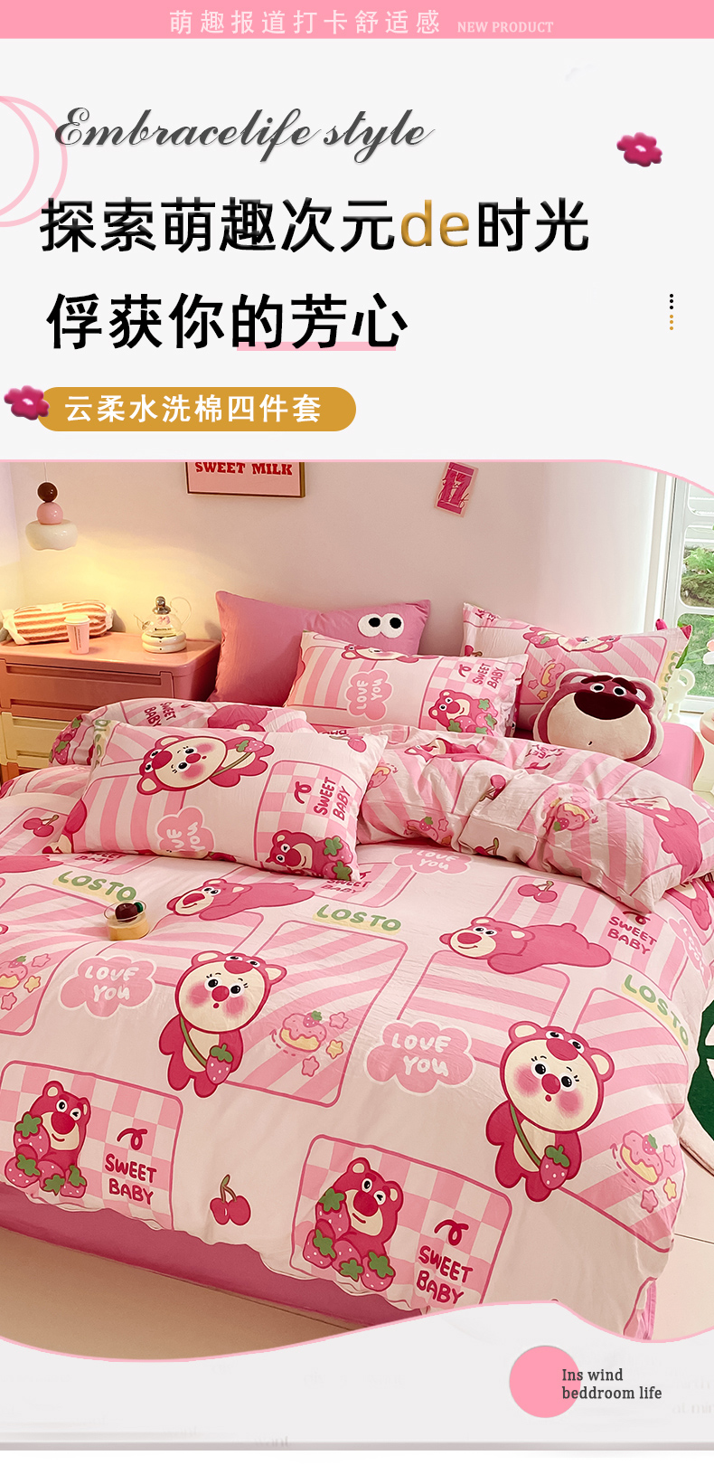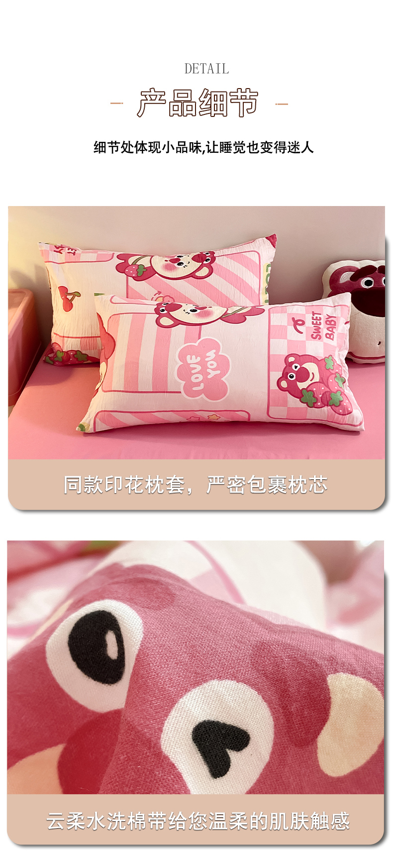 当前位置: 91家纺网 > 商品网购 > 床品套件 > 四件套 > 水洗棉四件套 > 葡萄家 2024新款双层纱云柔水洗棉萌趣卡通系列四件套(提供买家秀联系客服) 草莓小熊