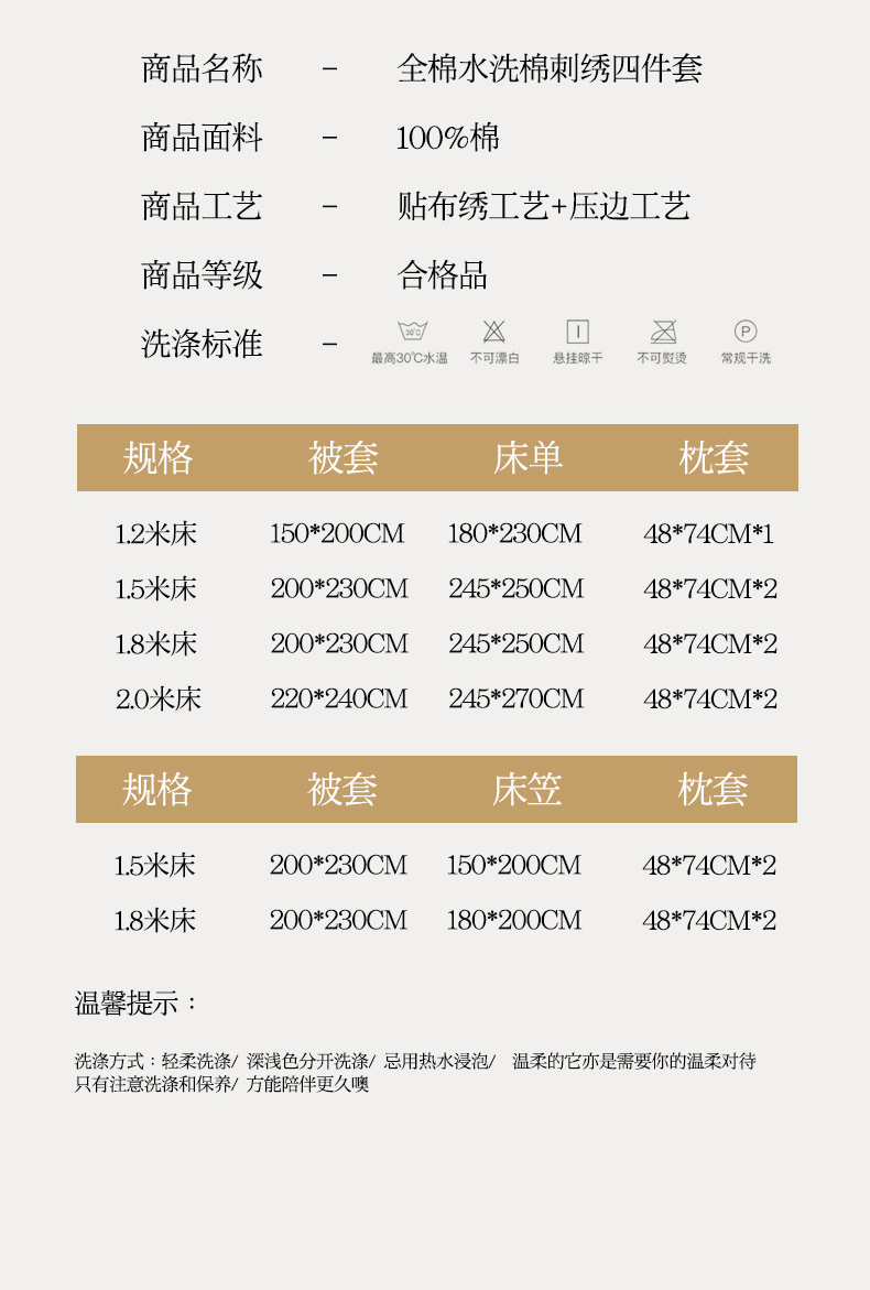 商品名称:艾莱家纺 2024新款水洗棉加厚绣花四件套 卡其cat