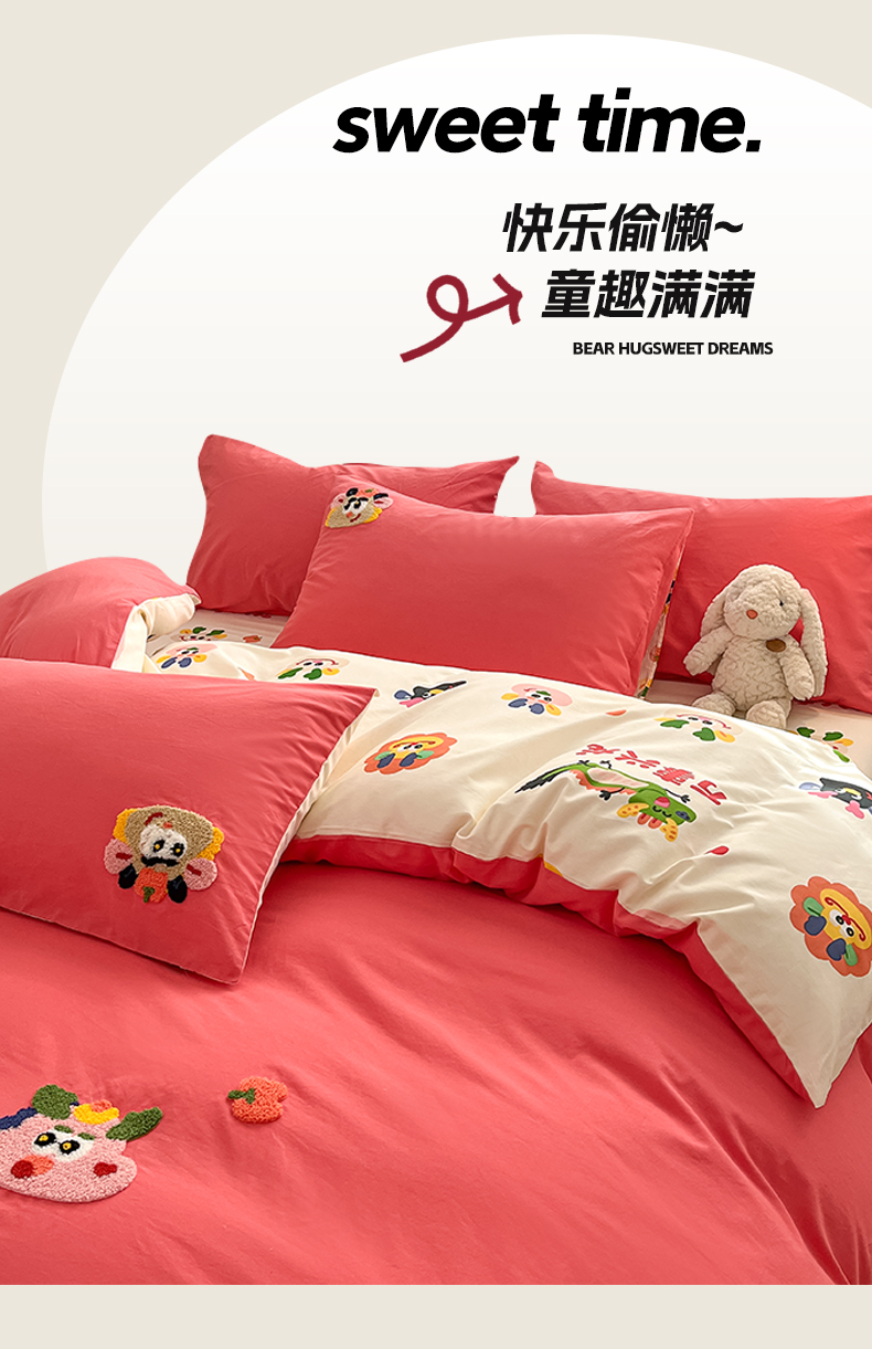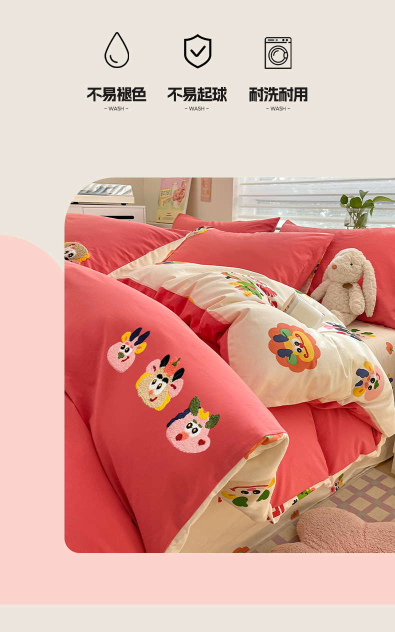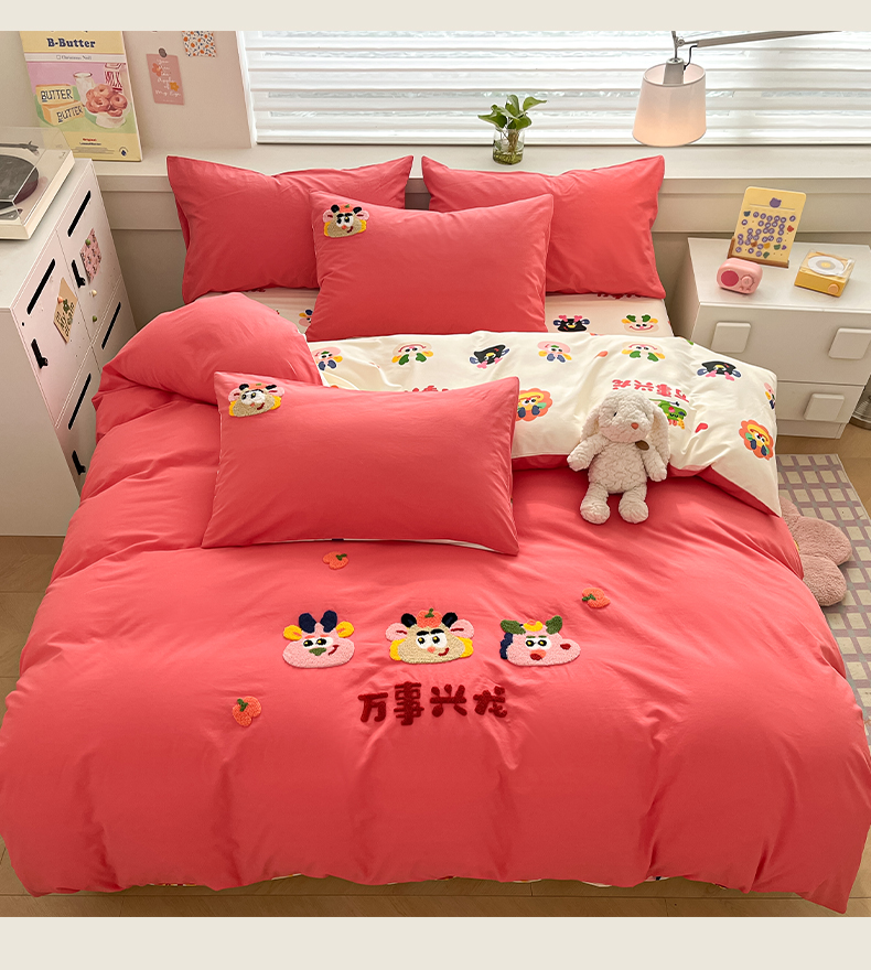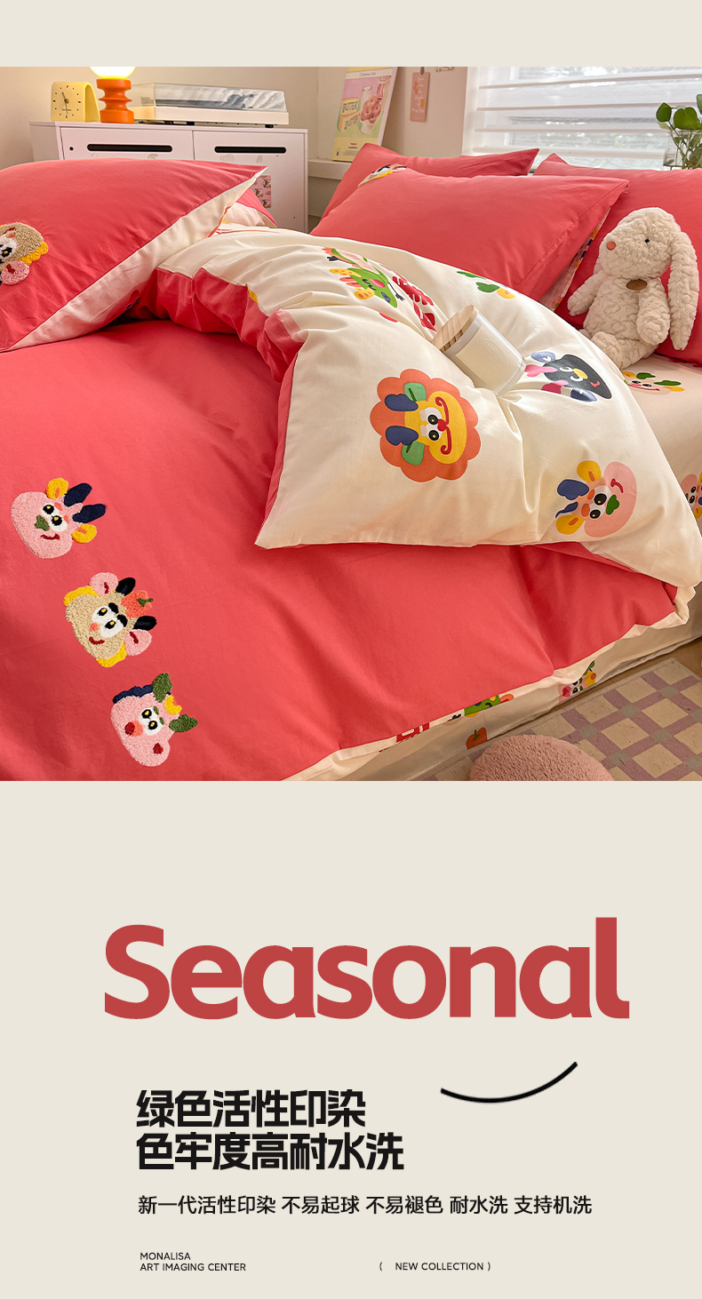 雅居纺家纺 2024新款全棉水洗棉绣花四件套 齐乐龙龙
