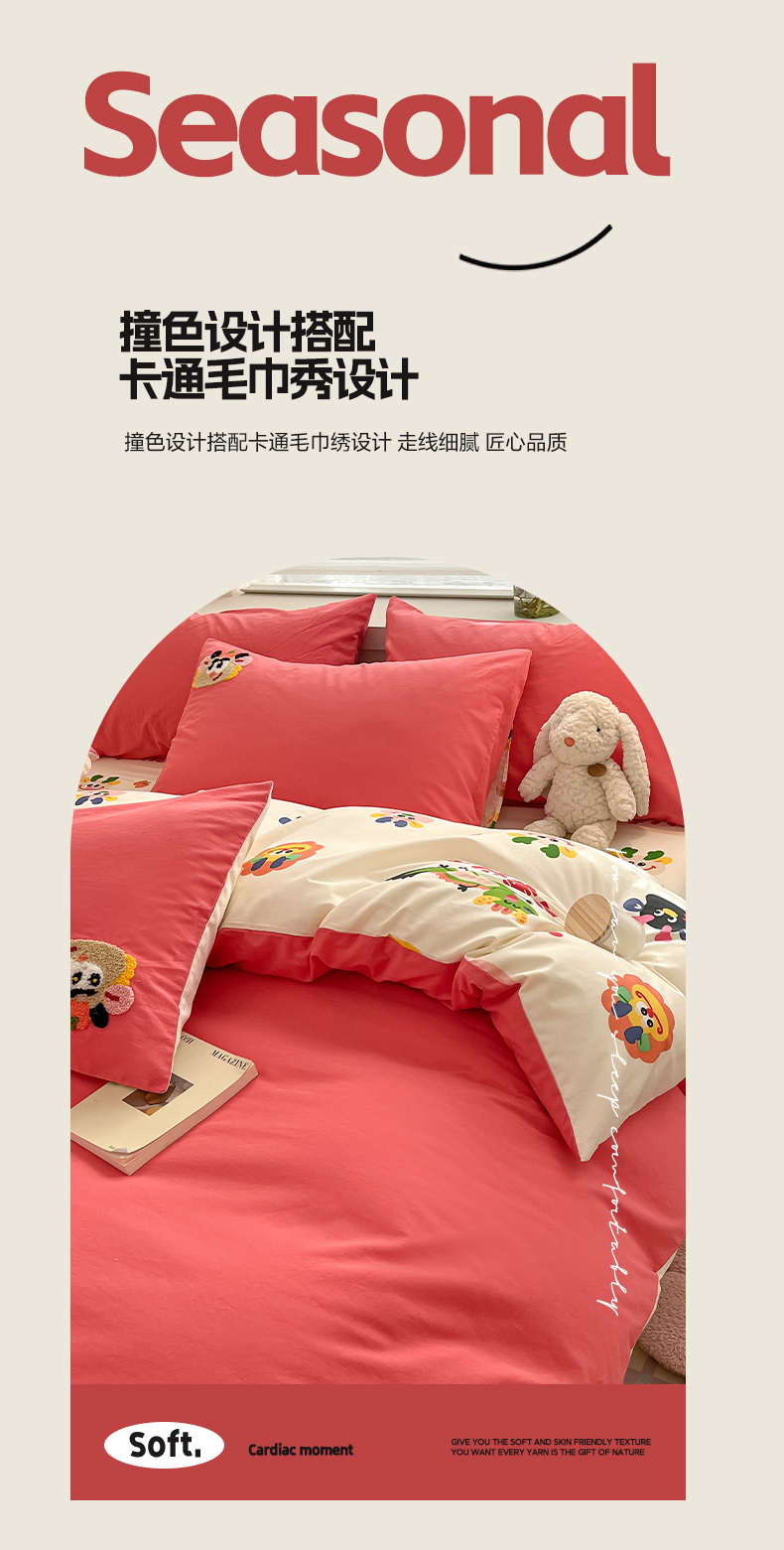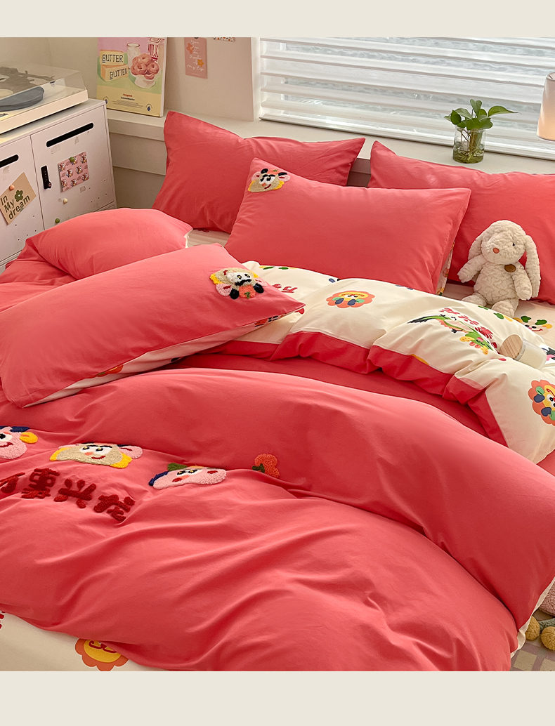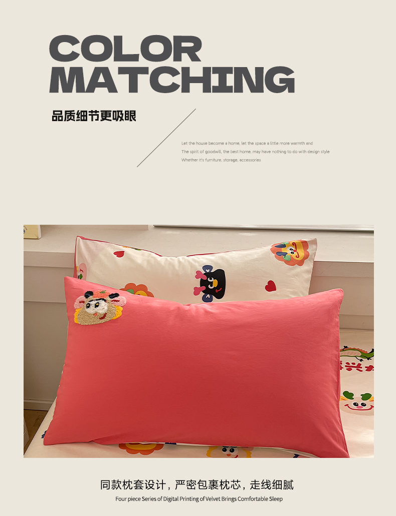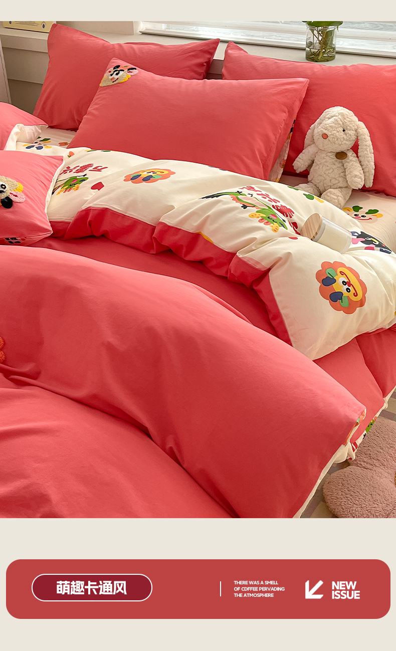 雅居纺家纺 2024新款全棉水洗棉绣花四件套 齐乐龙龙