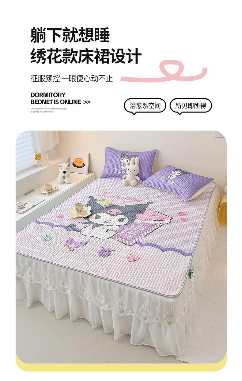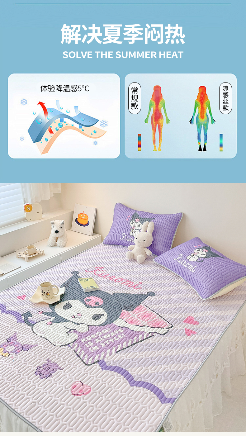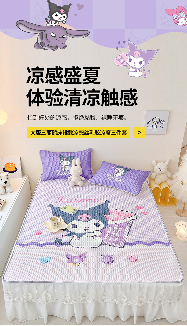 商品名称:(总)米帛家纺 2024新款大版三丽鸥A类凉感丝乳胶凉席-床裙款