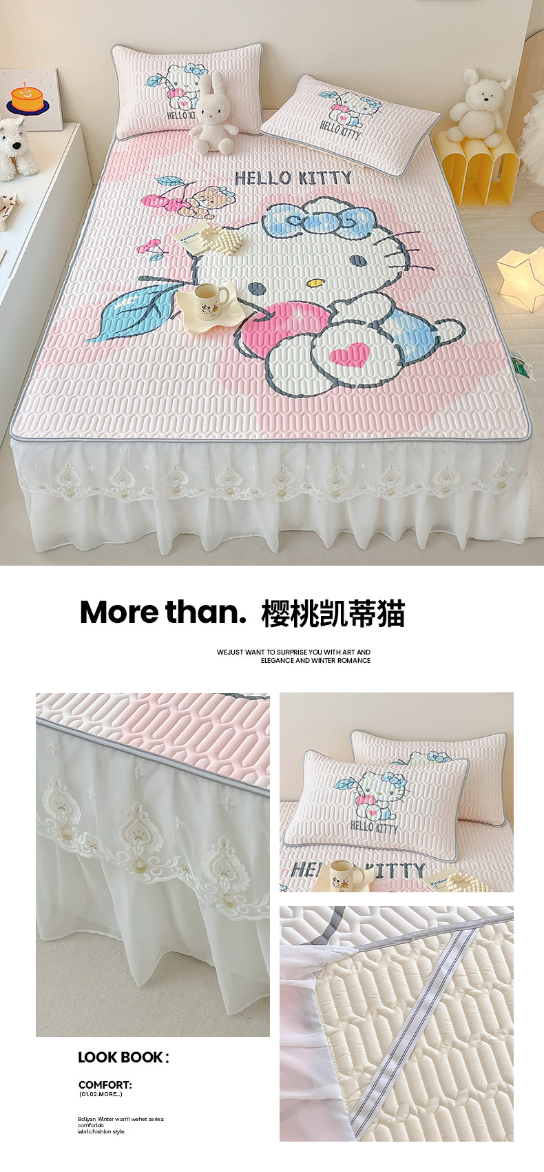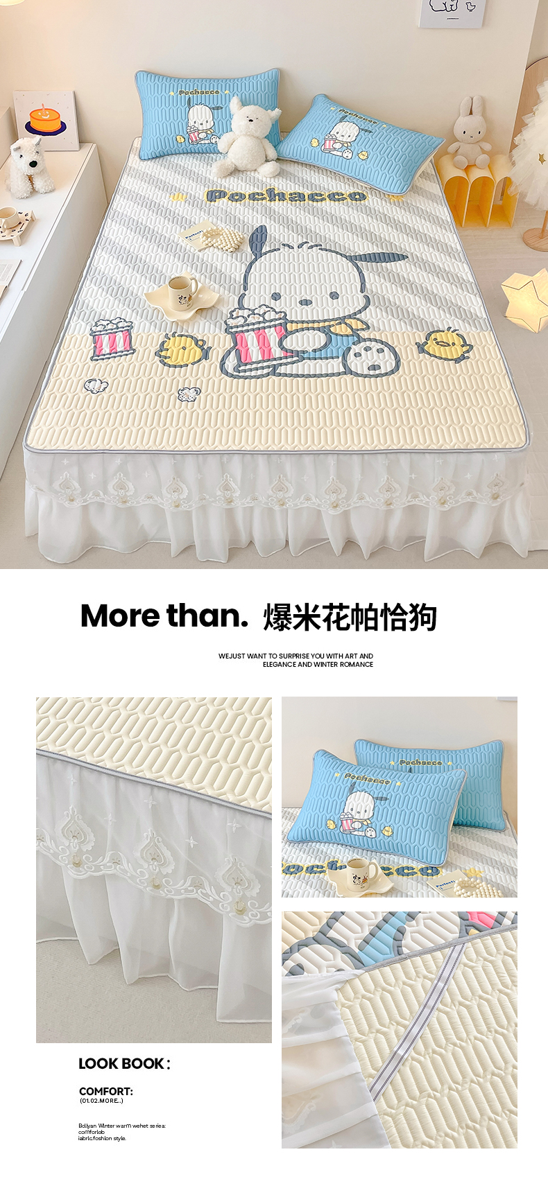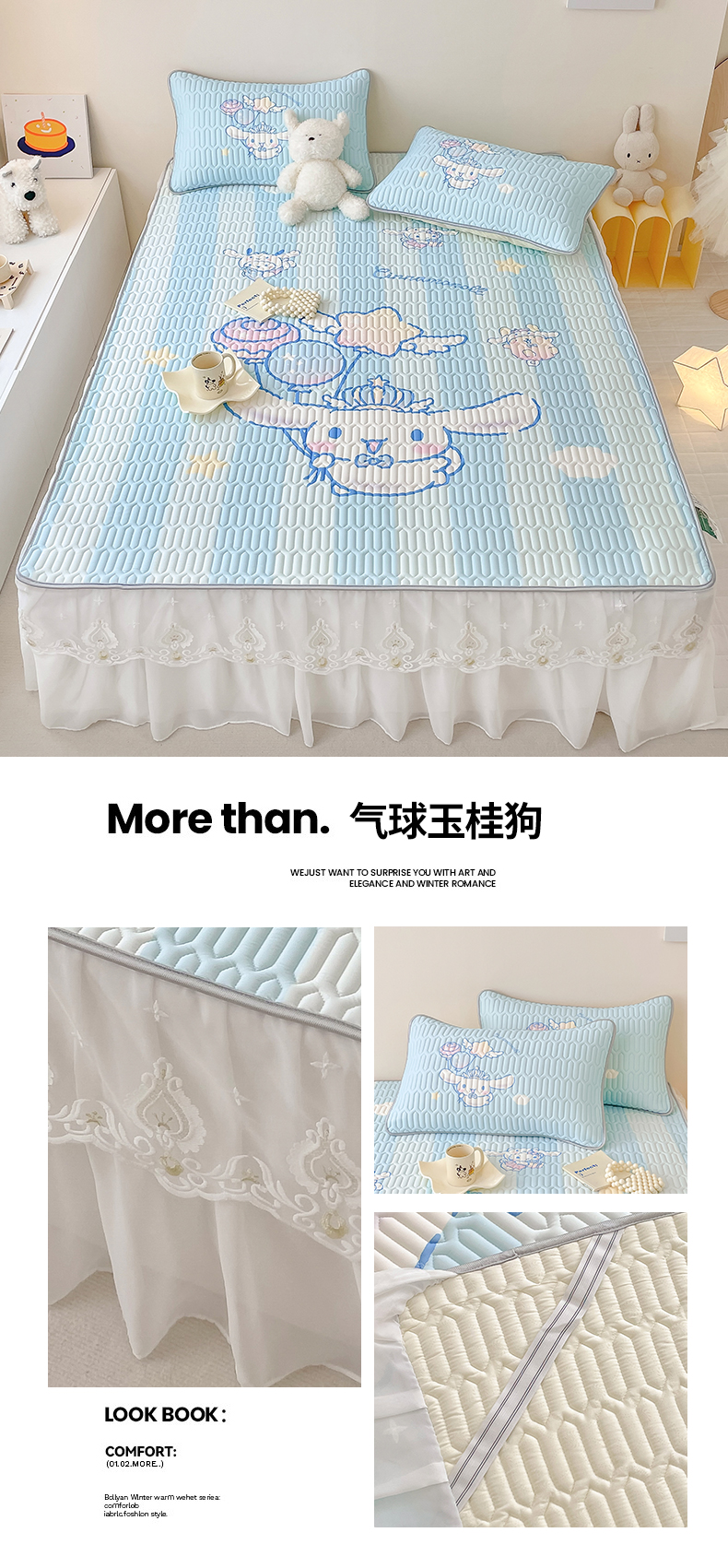 商品名称:(总)米帛家纺 2024新款大版三丽鸥A类凉感丝乳胶凉席-床裙款