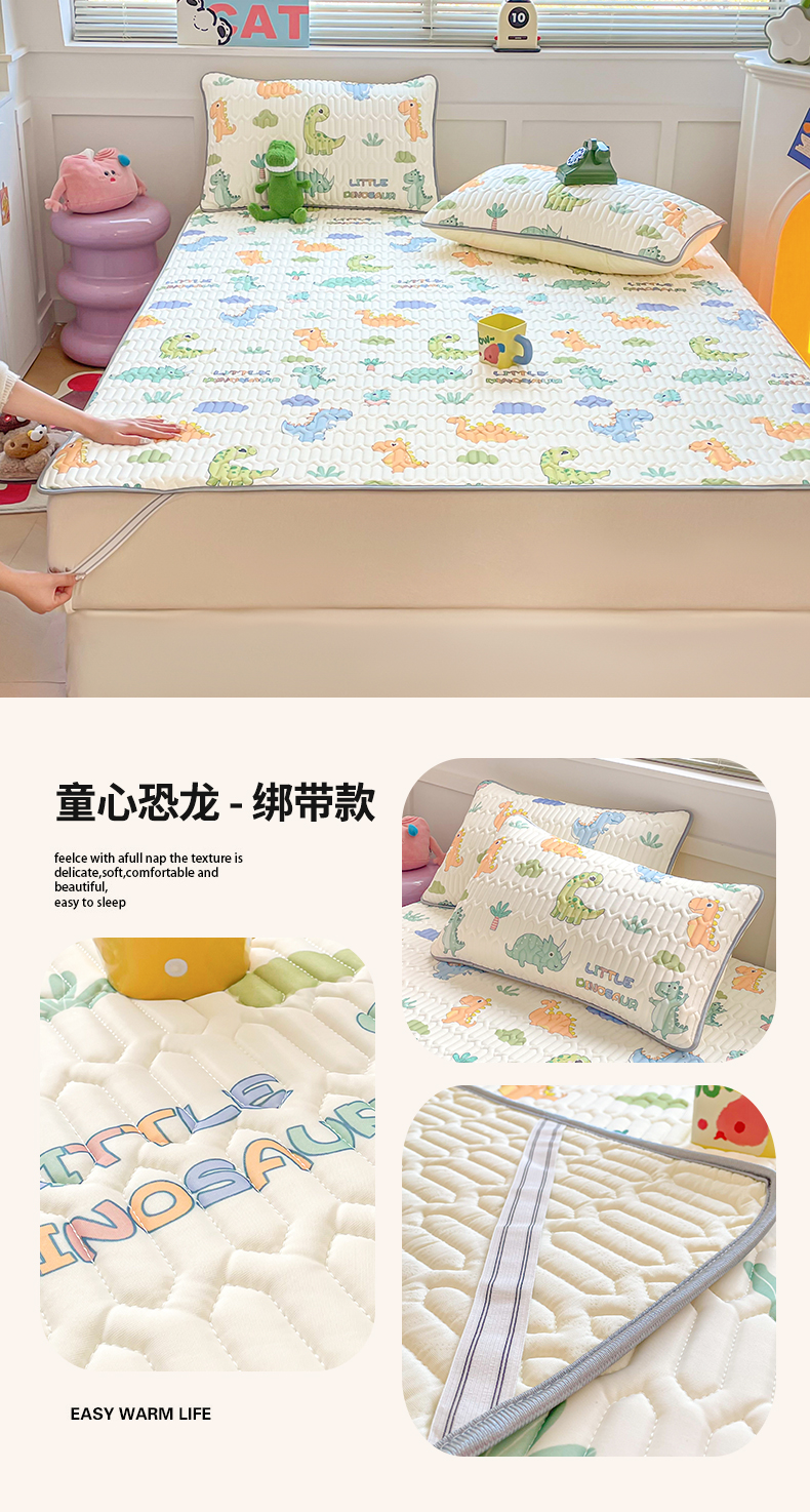 (总)米帛家纺 2024新款A类凉感丝卡通乳胶凉席-绑带款