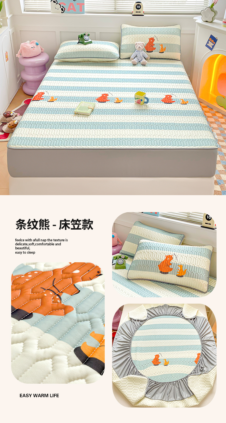 商品名称:米帛家纺 2024新款A类凉感丝卡通乳胶凉席-床笠款 条纹熊