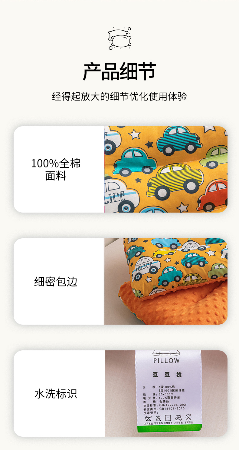 商品名称:芯元素 2024新款儿童全棉豆豆枕 卡通汽车