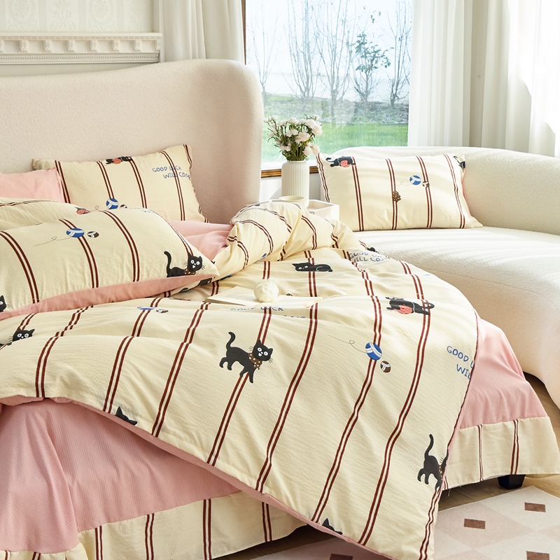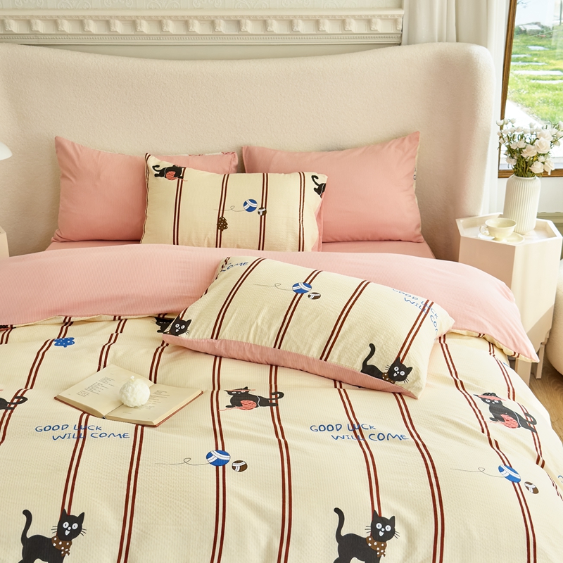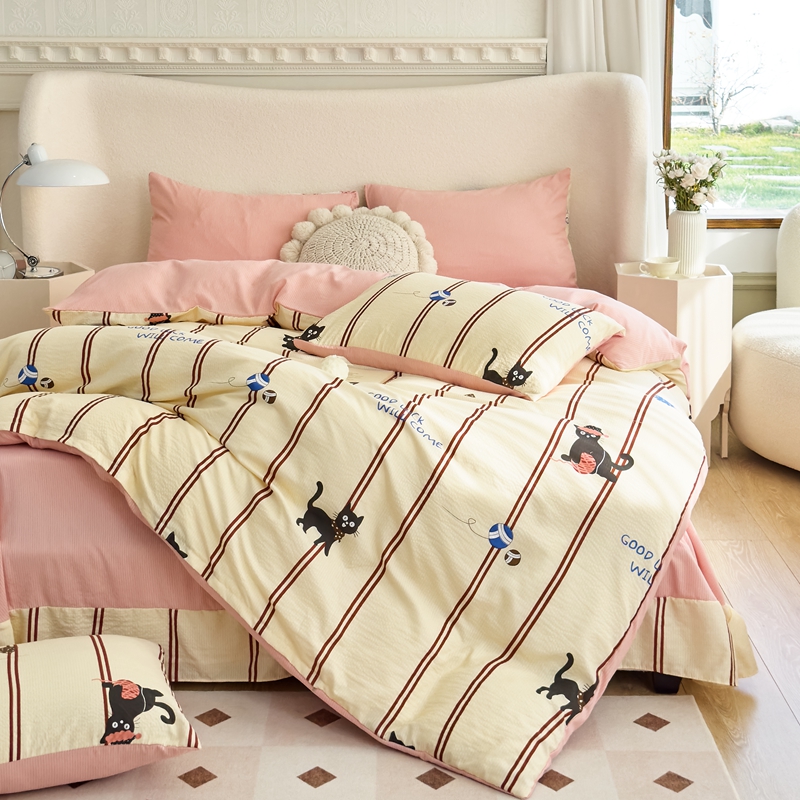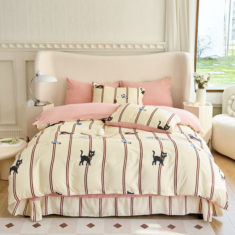 富之航家纺 2024新款提花泡泡棉四件套 喵星人-橘色
